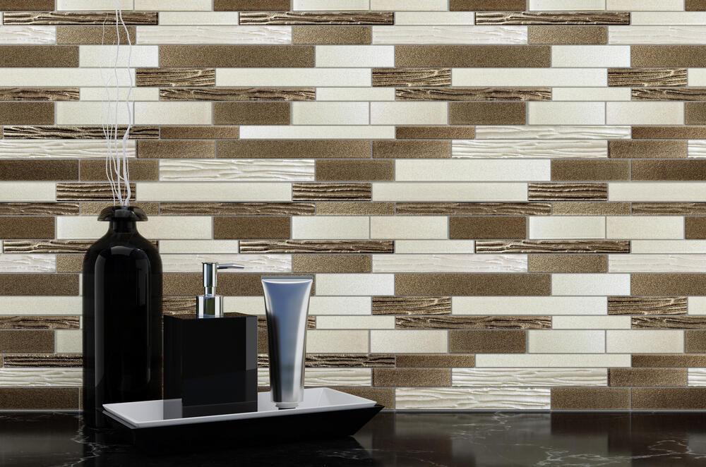 Madison Bay Linear Bronze 12 x 12 Glass Mosaic Tiles