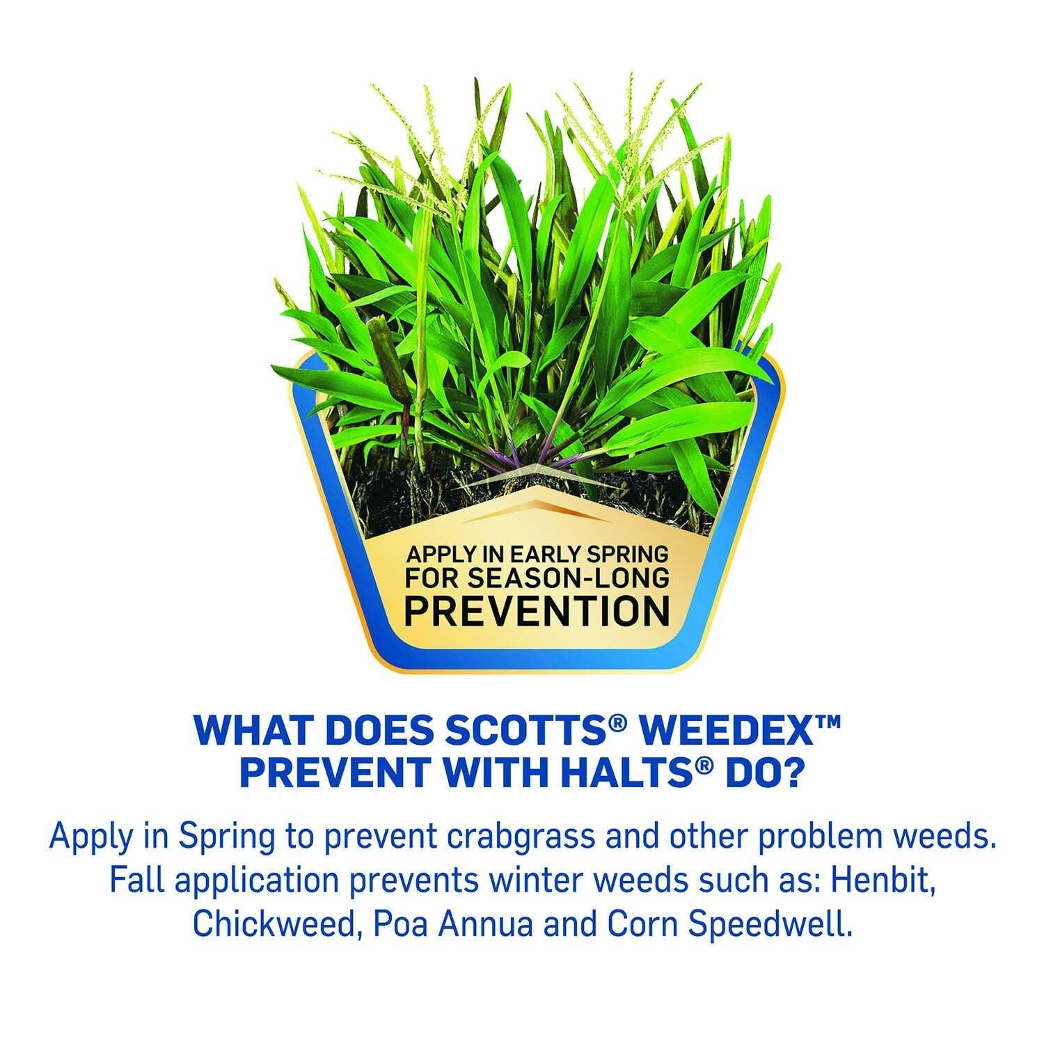 Looking for a way to prevent weeds for a beautiful lawn all season long. A single application of Scotts WeedEX Prevent with Halts in the early spring can prevent crabgrass and problem weeds. Rain, snow or freezing weather won't affect the product performance, so you don't have to worry about the elements after you've applied. Apply easily with a Scotts broadcast, drop, hand-held or Wizz spreader to all lawn and grass types.