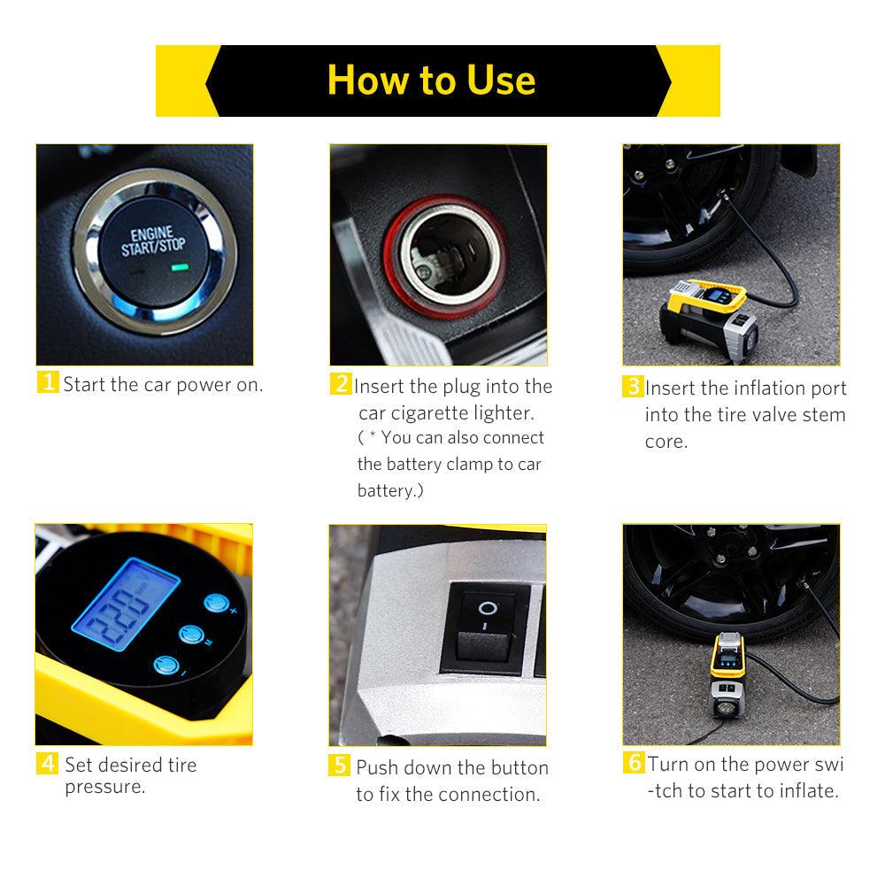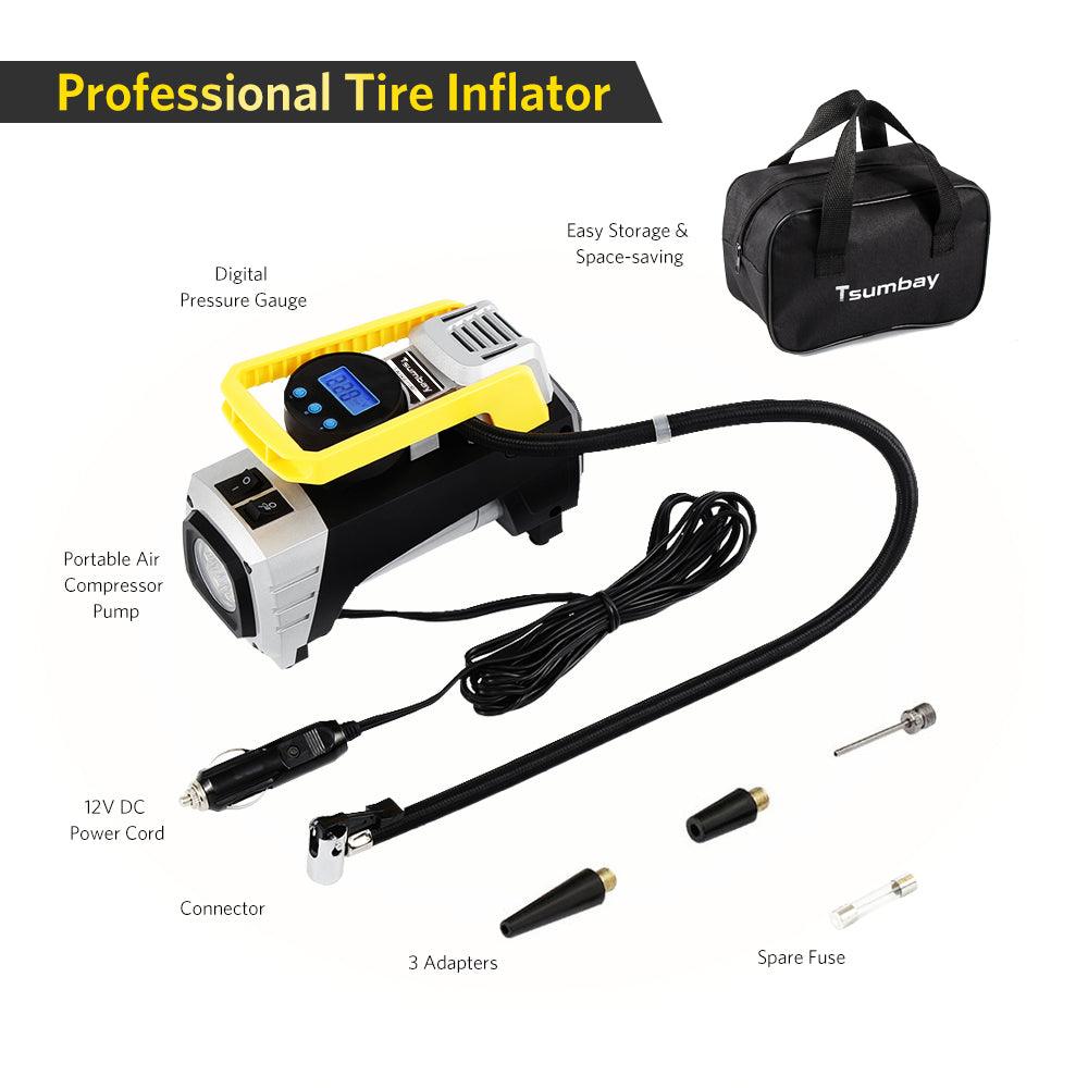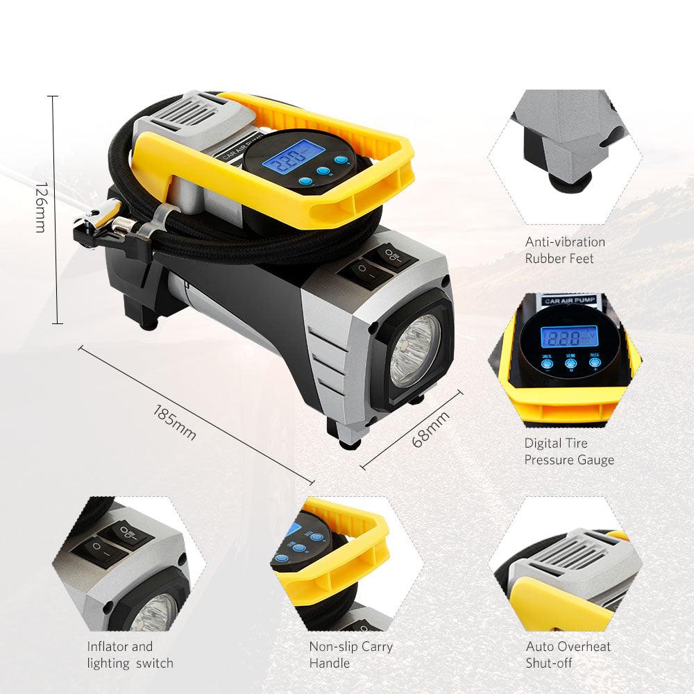Air Compressor Pump, Double Cylinder Car Air Pump Portable Tire Inflator Pump + Gauge 12V 150 PSI Tire Pump for Car, Truck, Bicycle, and Other Inflatables
