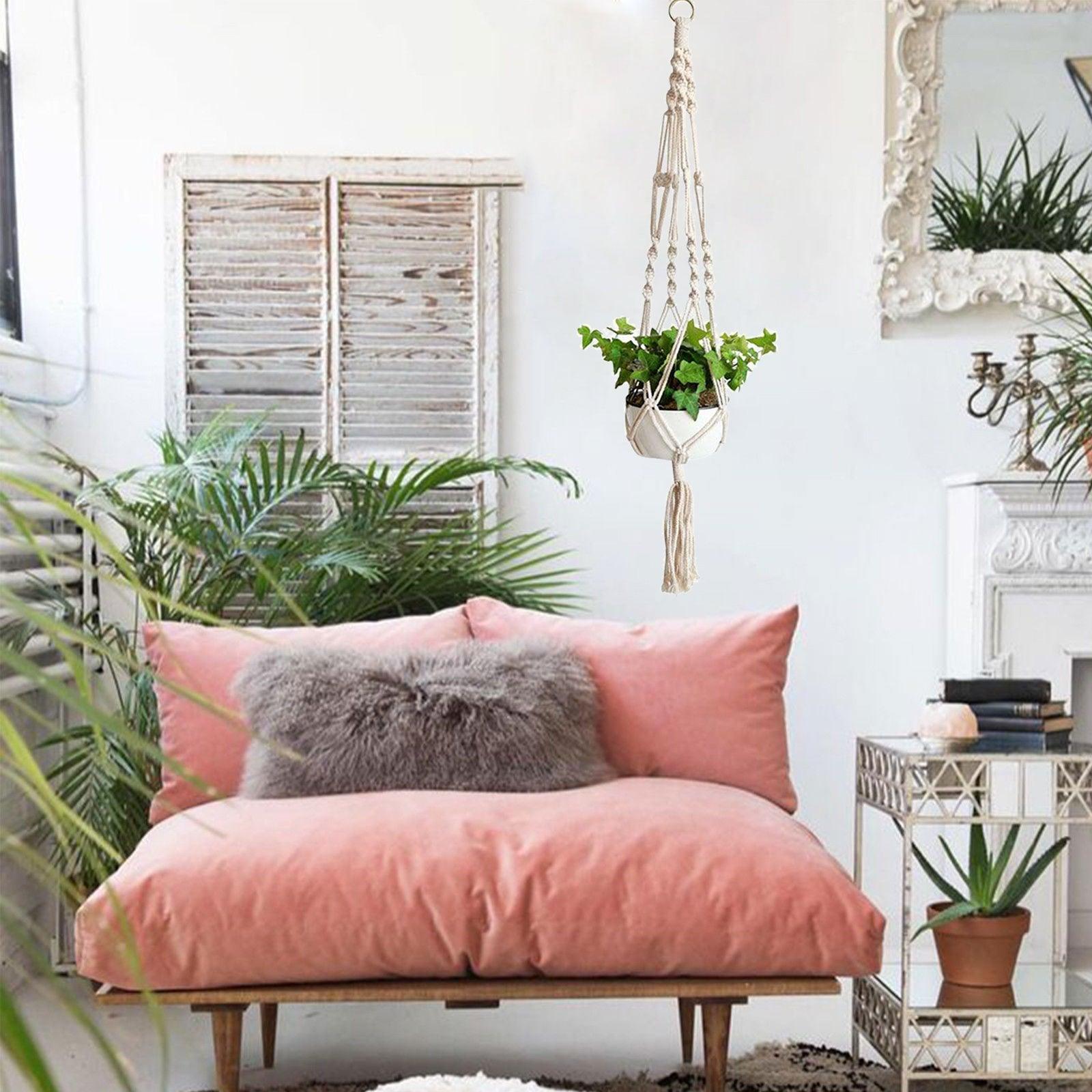 EEEKit 2 Pack Macrame Plant Hanger - Indoor Outdoor Hanging Planter Shelf - Decorative Flower Pot Holder - Hanging Baskets For Plant, Boho Bohemian Home Decor, in Box, for Succulents, Cacti, Herbs