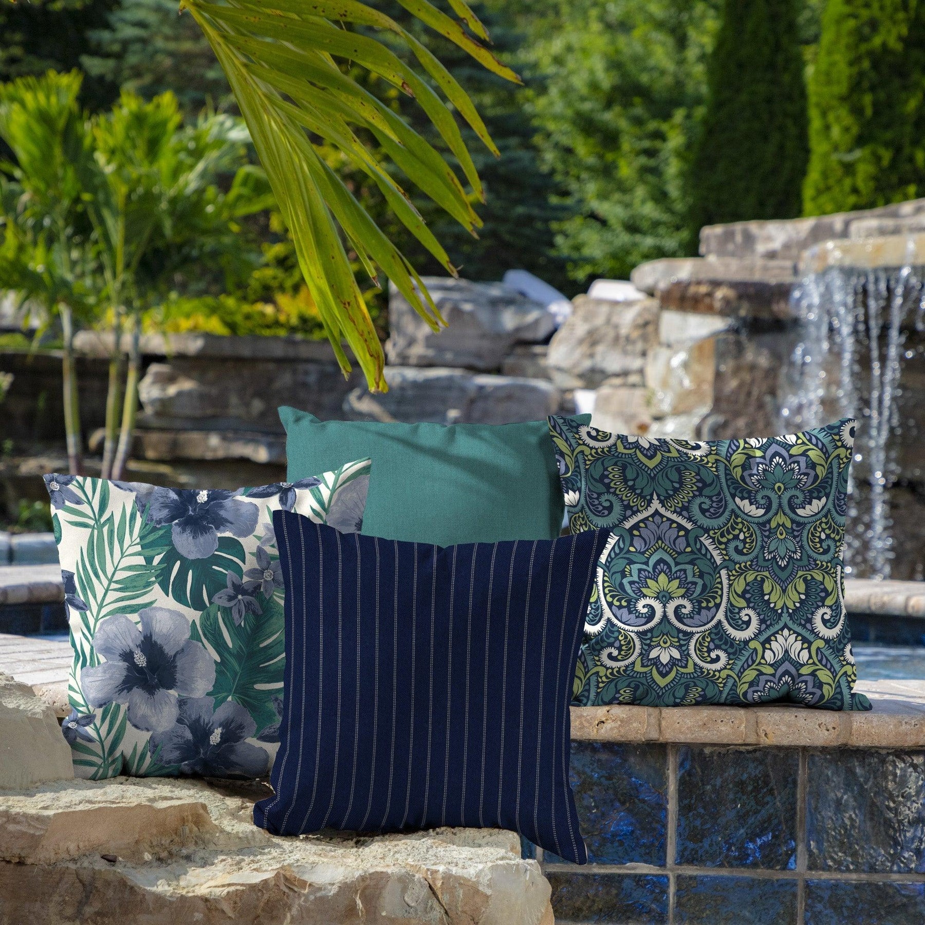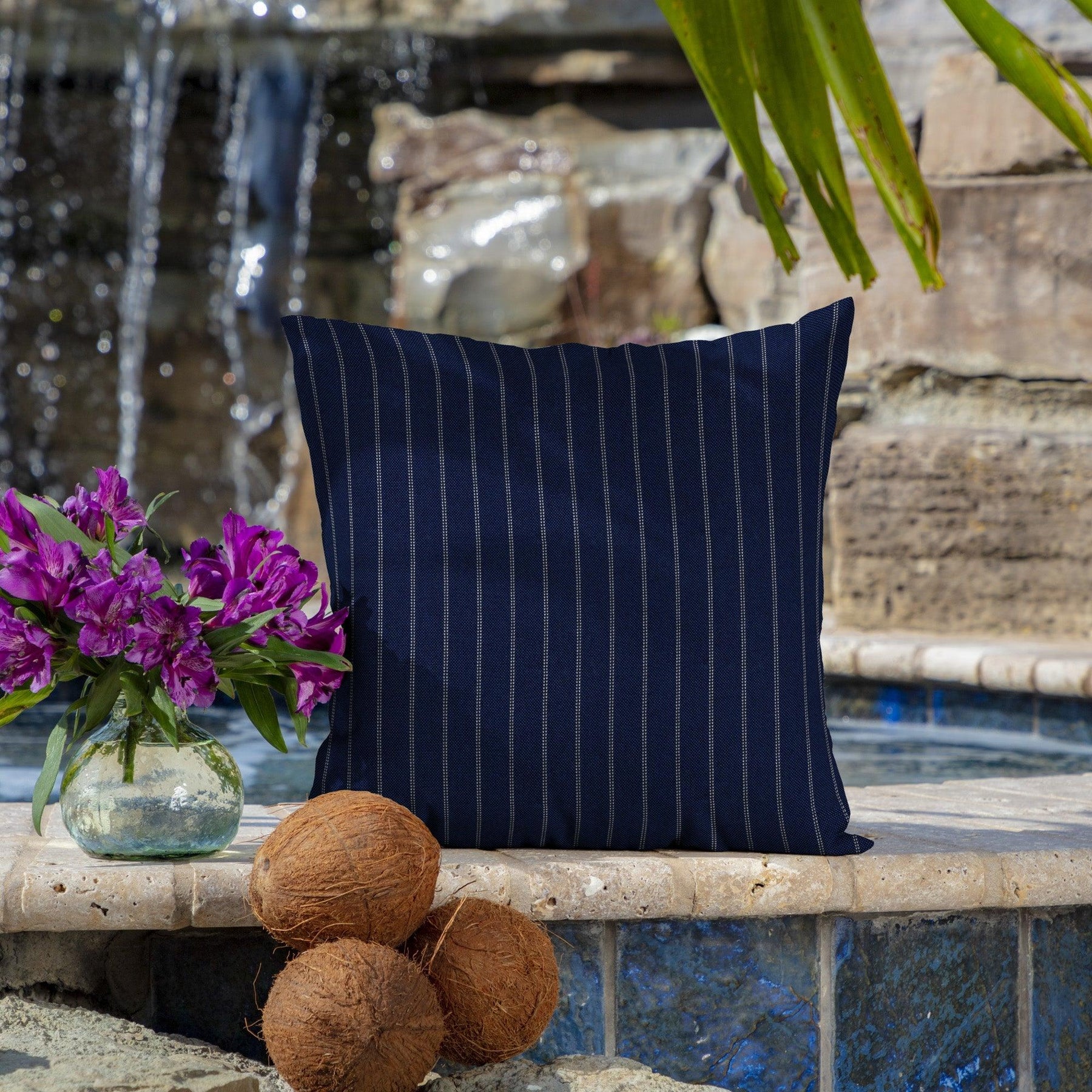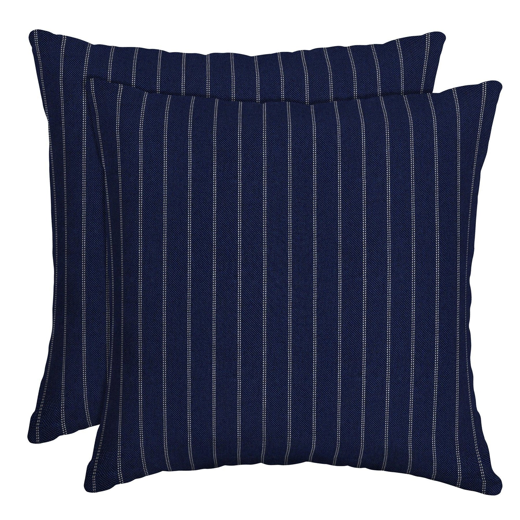 Arden Selections Navy Woven Stripe 16 x 16 in. Outdoor Throw Pillow, 2 pack