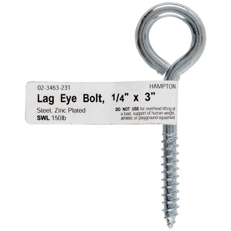 Hampton 1/4 in. X 3 in. L Zinc-Plated Steel Lag Thread Eyebolt