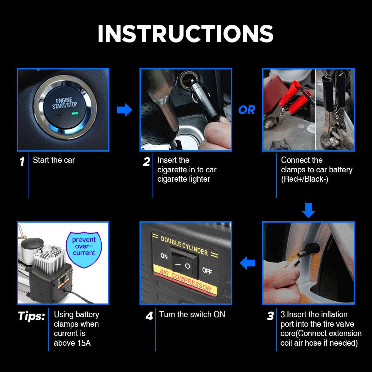 Double Cylinder Car Air Pump Portable Air Compressor Pump Tire Inflator Pump + Gauge 12V 150 PSI Tire Pump for Car, Truck, Bicycle, and Other Inflatables