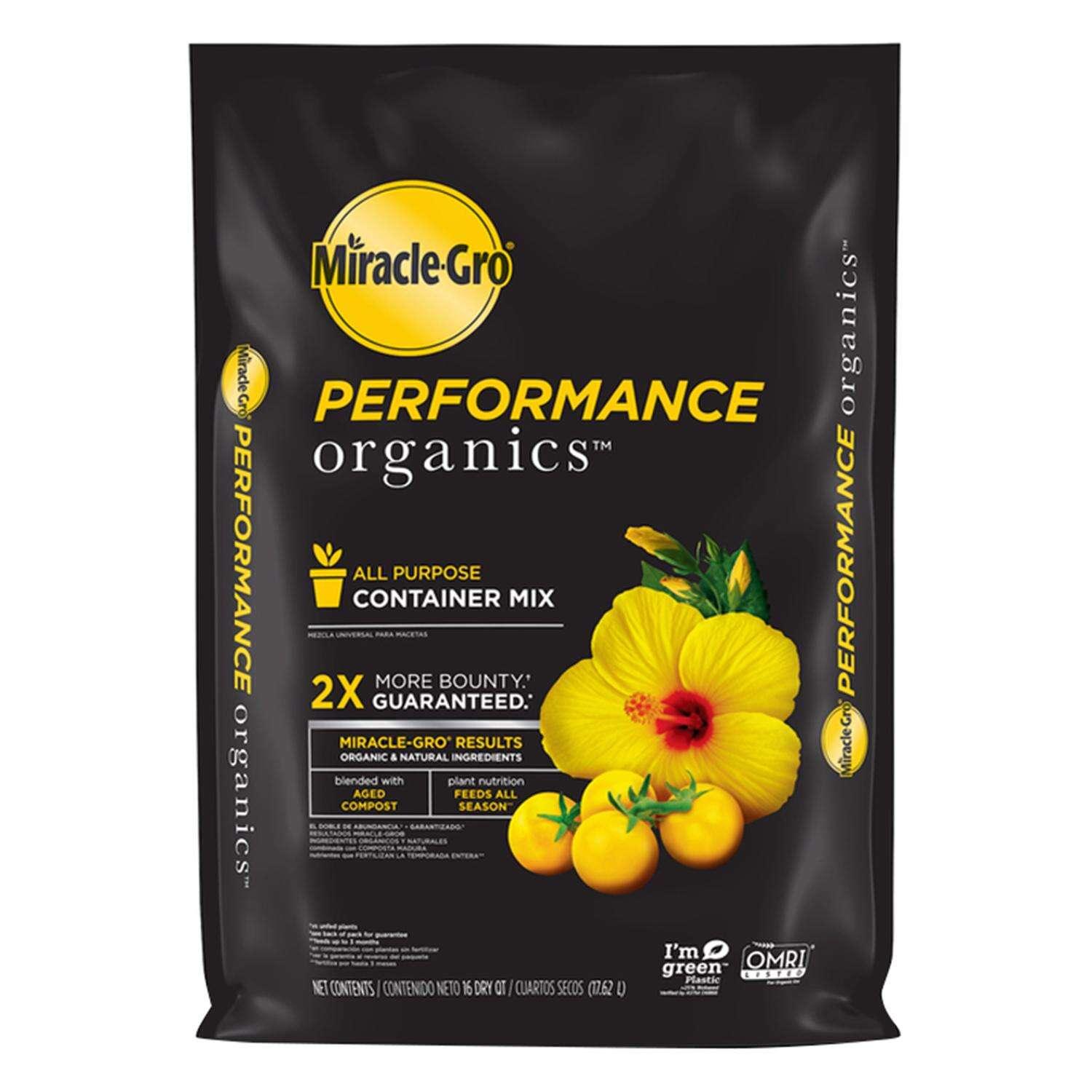 Astonishing results, every time - that has always been the Miracle-Gro mission. Miracle-Gro Performance Organics All Purpose Container Mix delivers the Miracle-Gro results you expect with the organic and natural ingredients you want. Get more bounty - vegetables, flowers and herbs - organically with 3-month plant nutrition and aged compost. Provides 2x more bounty, guaranteed (vs. unfed plants). Use for your indoor and outdoor container plants to give them a great boost with plant food included in the soil that feeds up to 3 months.