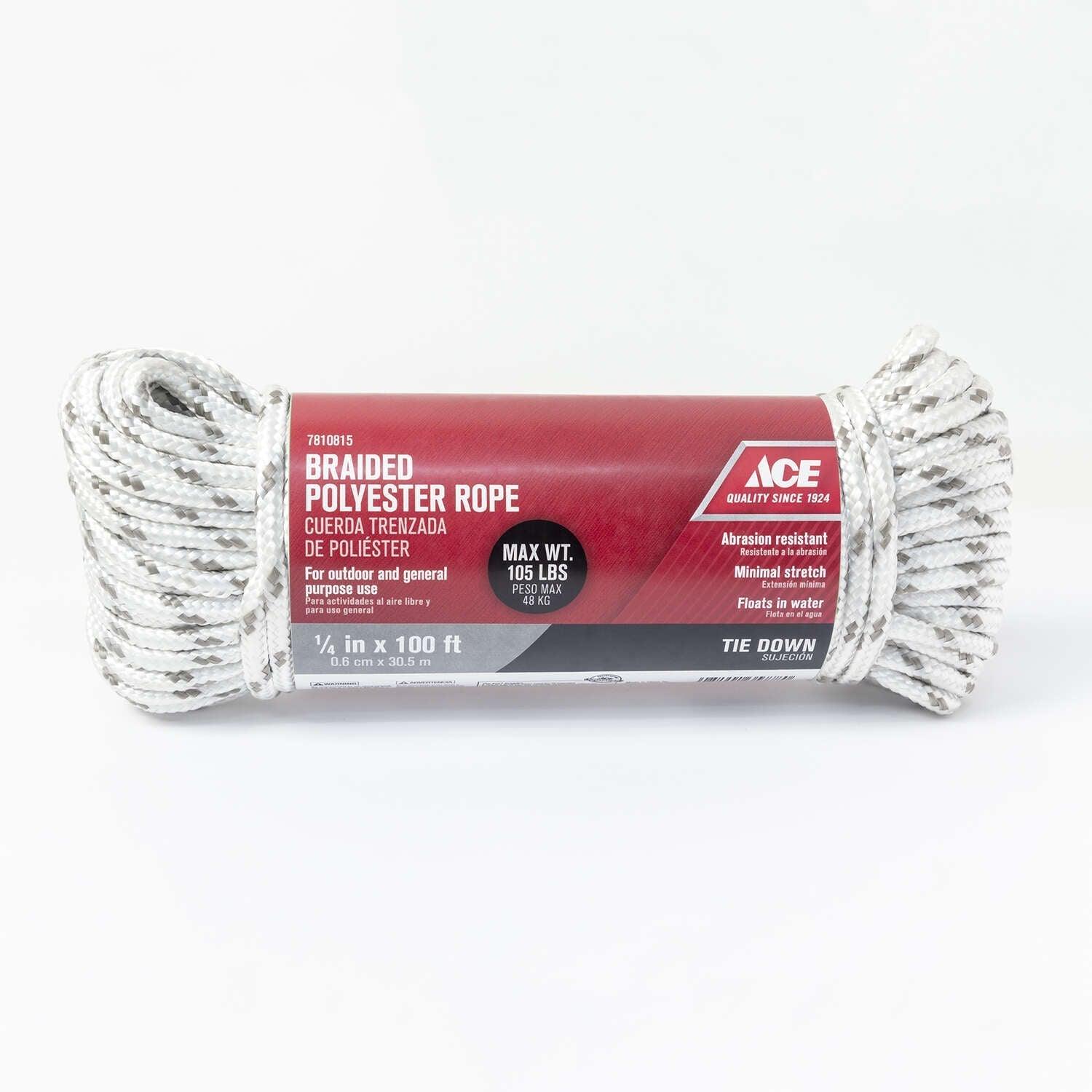 Ace 1/4 in. D X 100 in. L Gray/White Diamond Braided Poly Rope