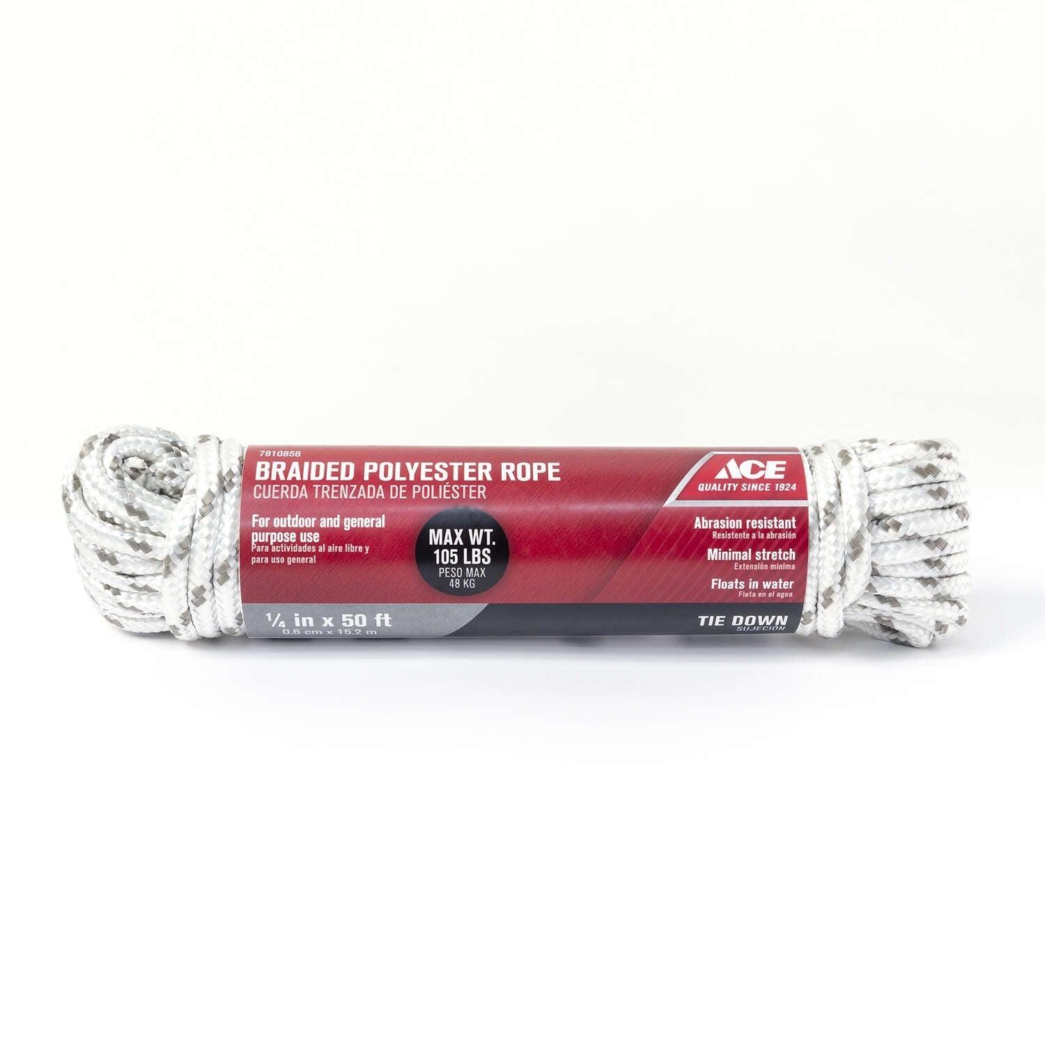 Ace 1/4 in. D X 50 in. L Gray/White Diamond Braided Poly Rope