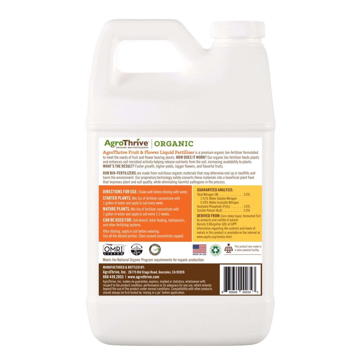 AgroThrive Organic Flowers/Fruits/Vegetables 3-3-5 Fertilizer 64 oz