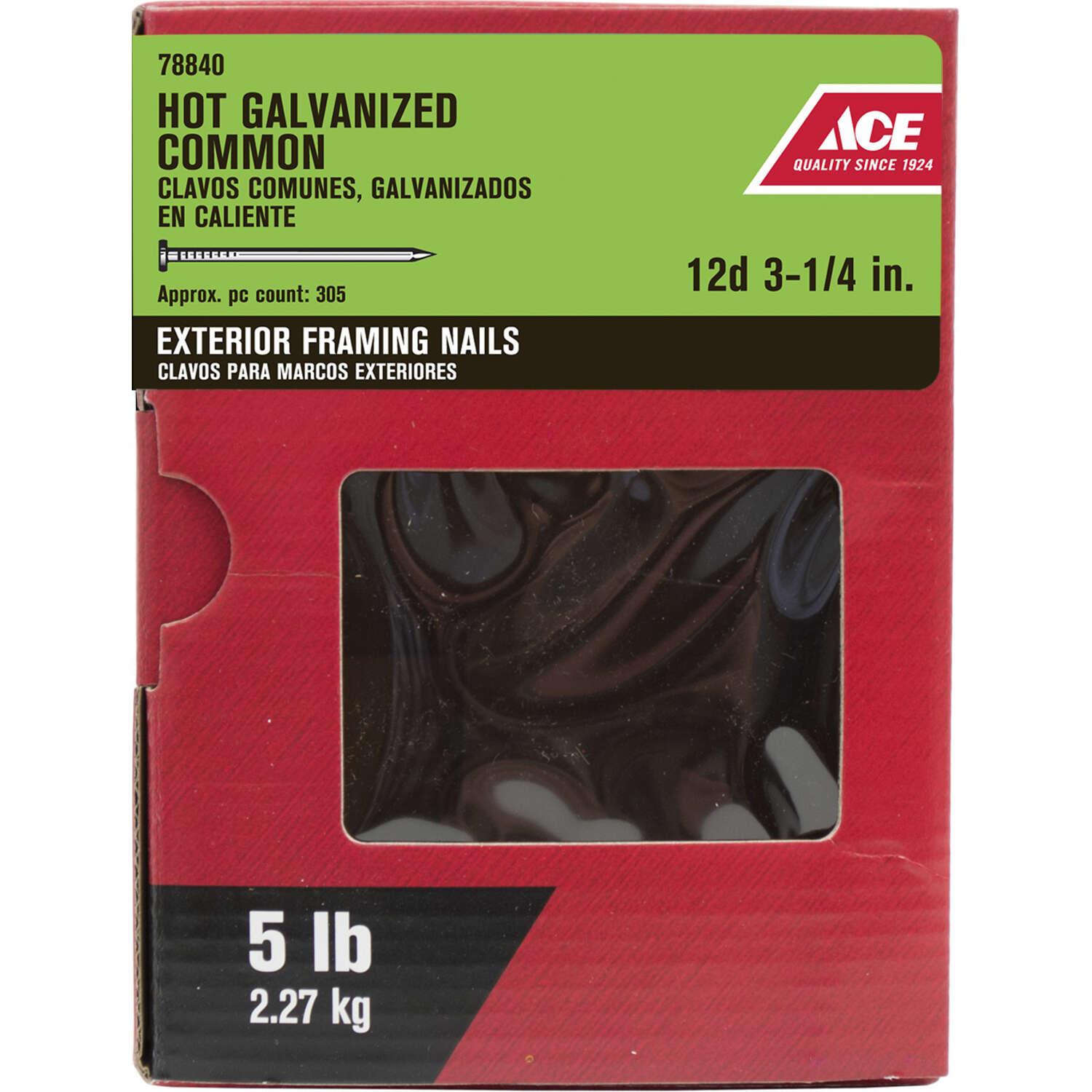 Ace 12D 3-1/4 in. Common Hot-Dipped Galvanized Steel Nail Flat Head 5 lb