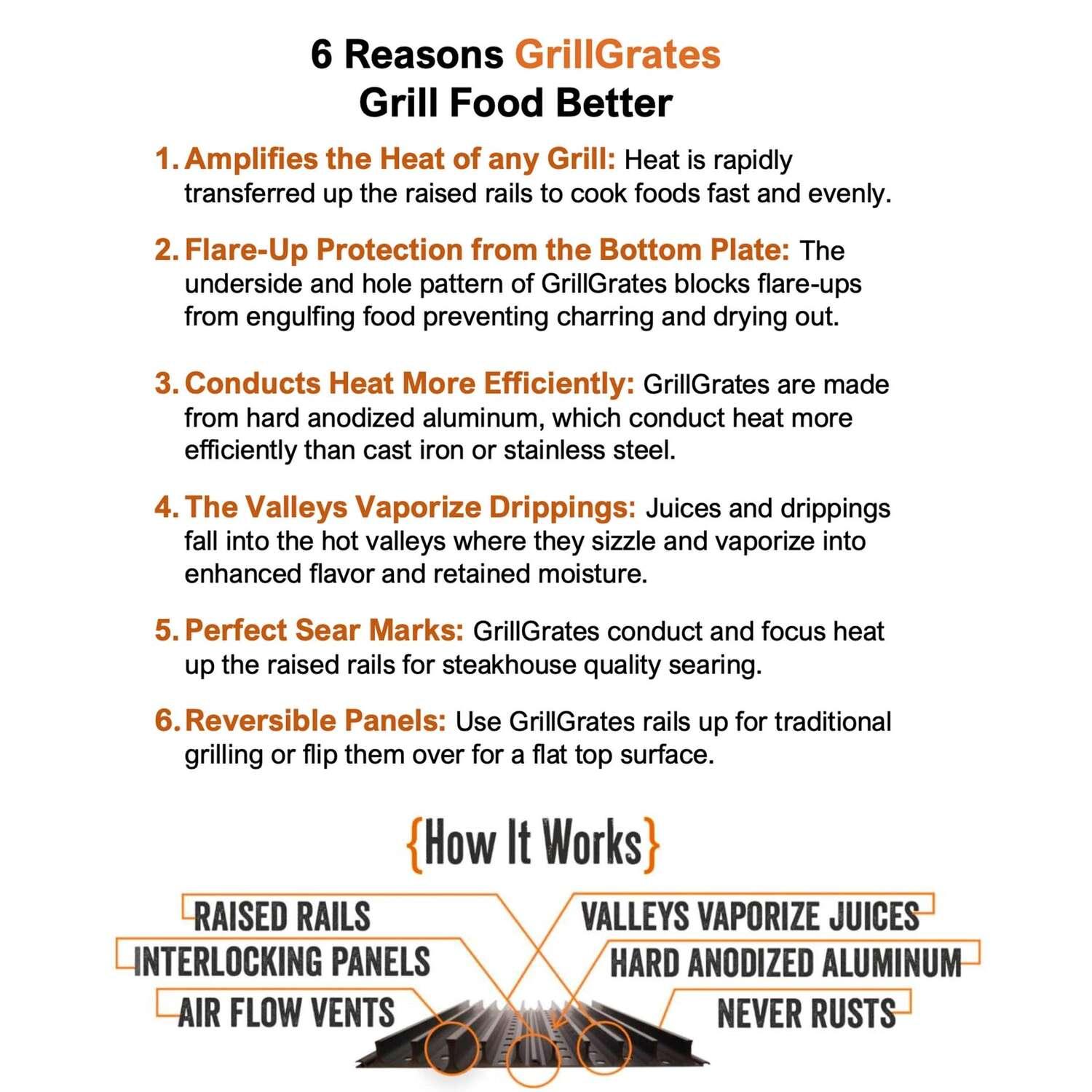 GrillGrates turn pellet smokers into pellet grills. They trap and concentrate heat and conduct it up the rails for great searing while the valleys sizzle juices for added flavor…that’s why we call GrillGrates for pellet grills "sear stations". Every set comes with a GrateTool which is part fork, part spatula that fits between the rails to get under your food and lift it without scraping.