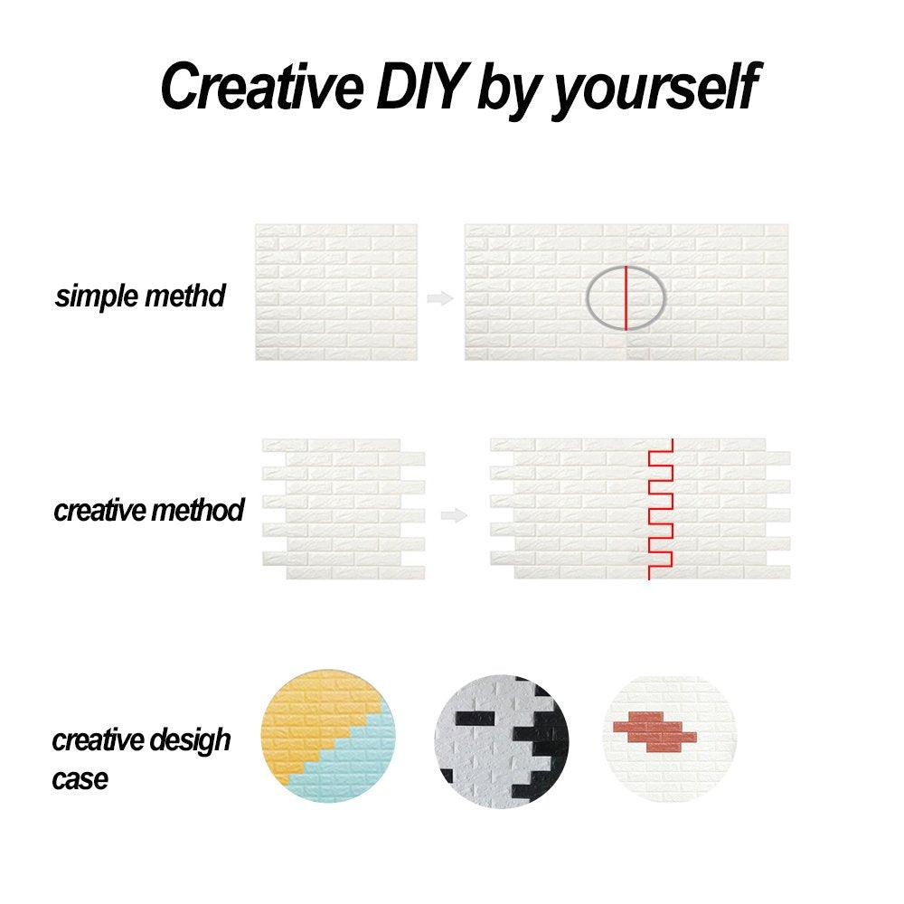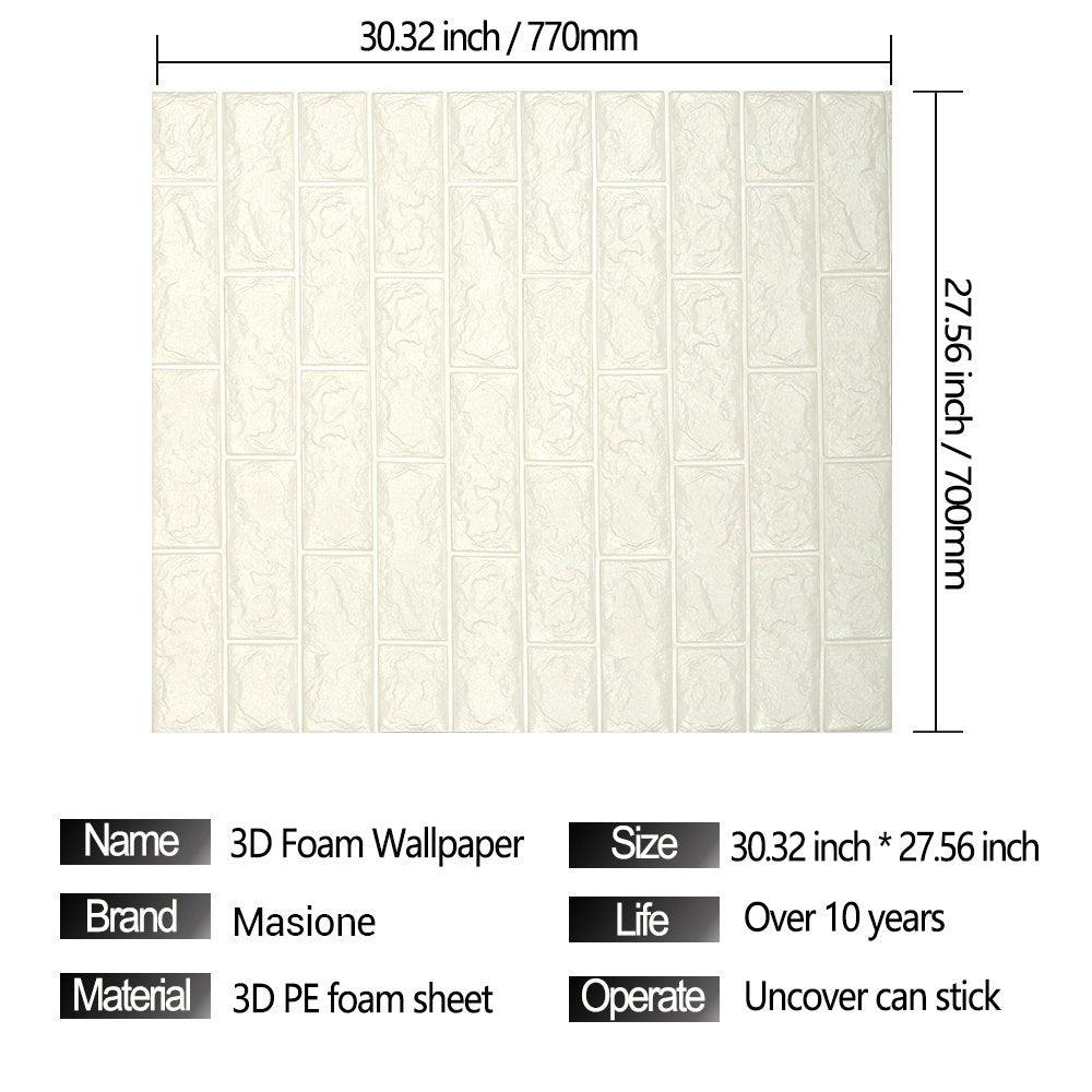 3D Brick Wall Stickers, PE Foam Self-Adhesive Wallpaper Peel and Stick 3D Art Wall Panels for Living Room Bedroom Background Wall Decoration,White (30.3" x 27.1" (77cm x 69cm))