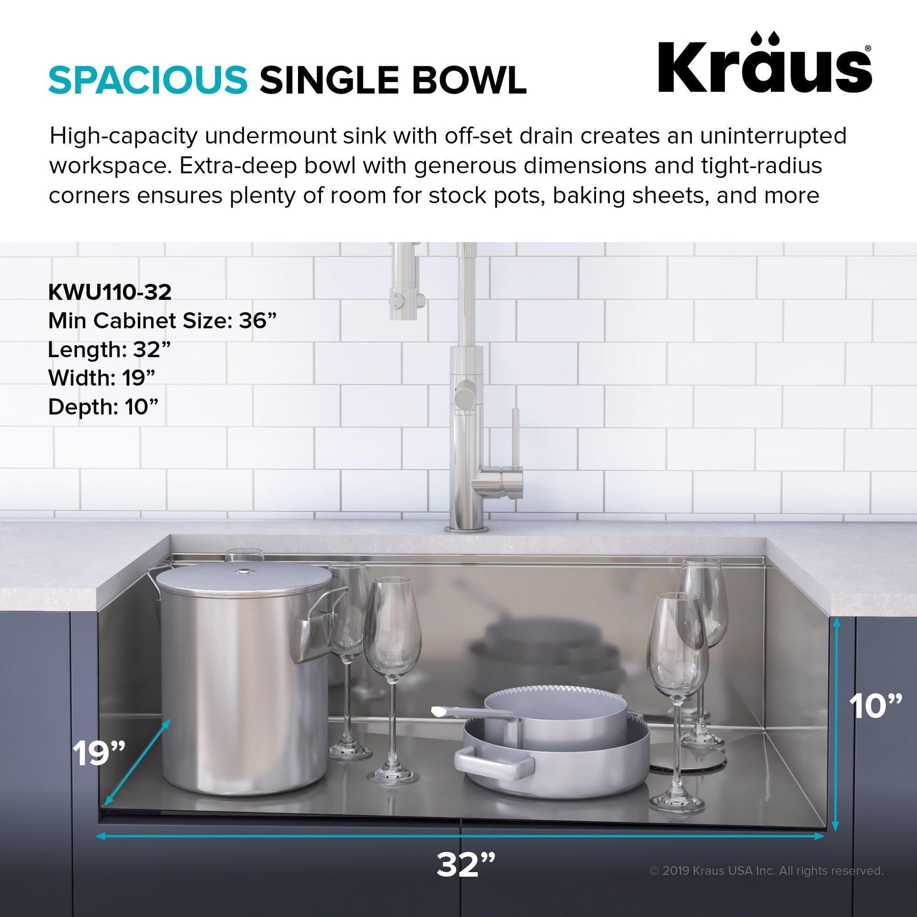 KRAUS Kore™ Workstation 32-inch Undermount 16 Gauge Single Bowl Stainless Steel Kitchen Sink with Accessories (Pack of 5)