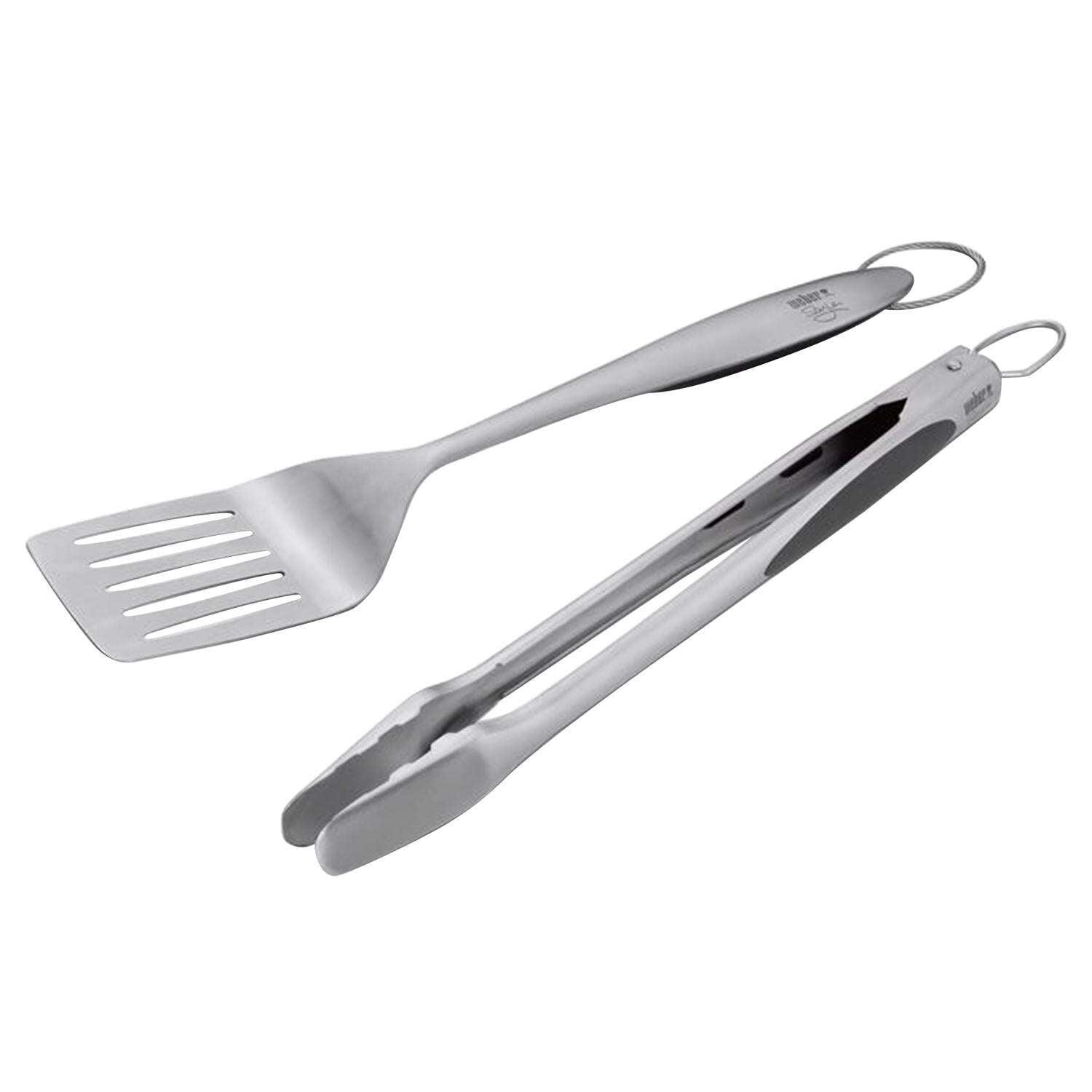 A spatula and tongs go together like salt and pepper. Whether flipping burgers, turning hotdogs or transferring beer can chicken from tray, two cooking grates, the spatula and hands-free locking tongs in the Deluxe Tool Set are two of your everyday grilling essentials.