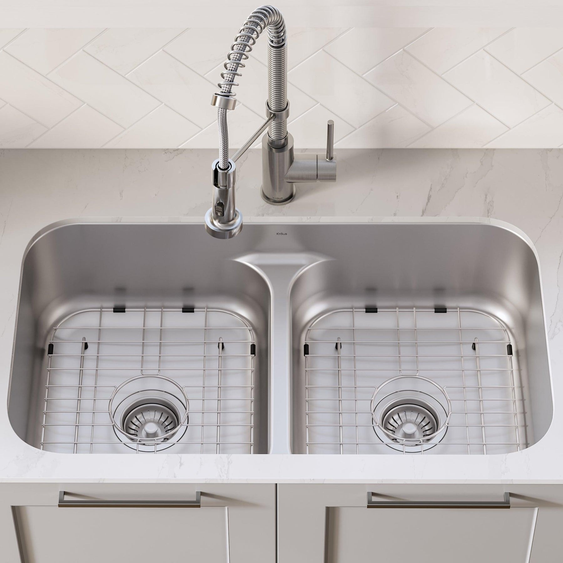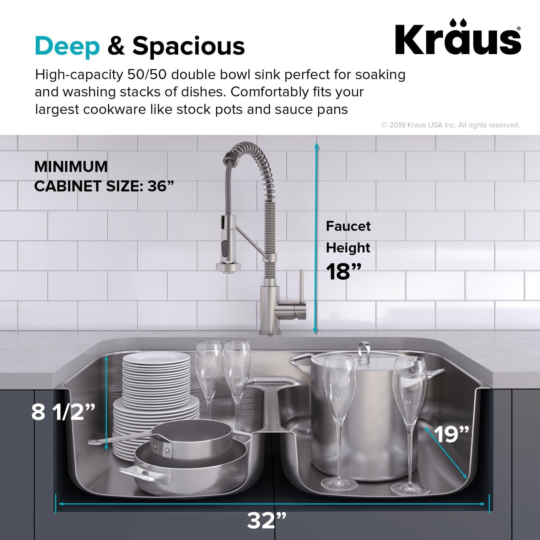 KRAUS Ellis 33-inch 16 Gauge Undermount Kitchen Sink Combo Set with Bolden 18-inch Pull-Down Commercial Kitchen Faucet, Stainless Steel Finish