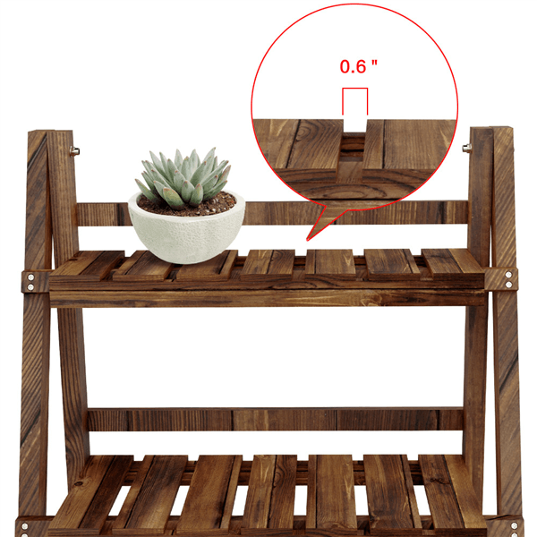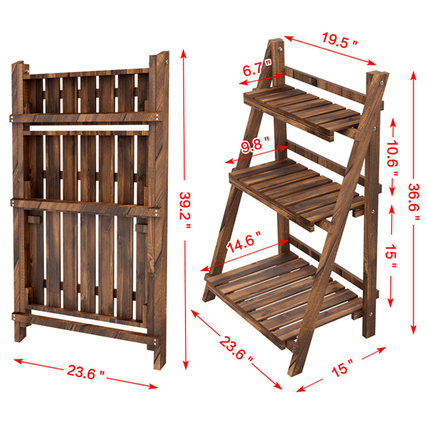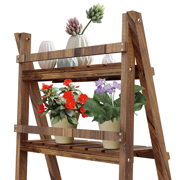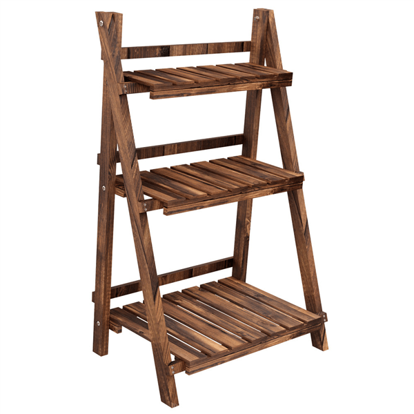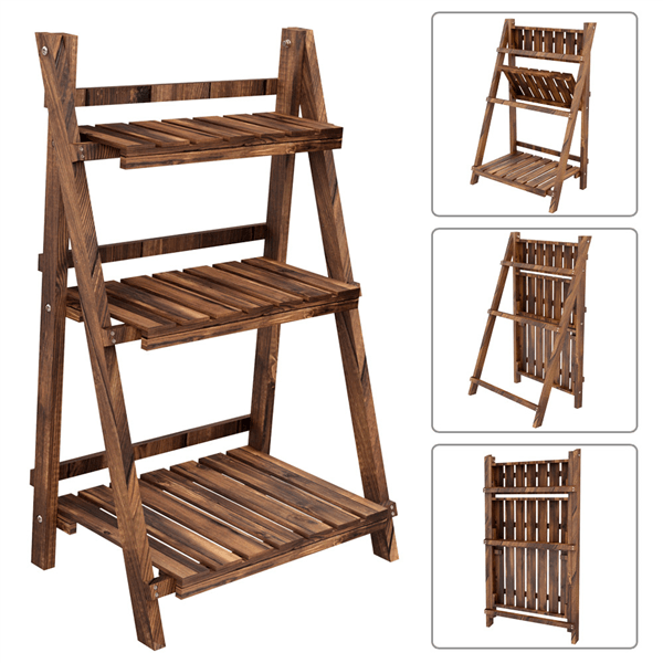 3 Tier Folding Wooden Flower Stand Plant Display Stand Nature Plant Shelf for Living Room Balcony Patio Yard Indoors & Outdoors