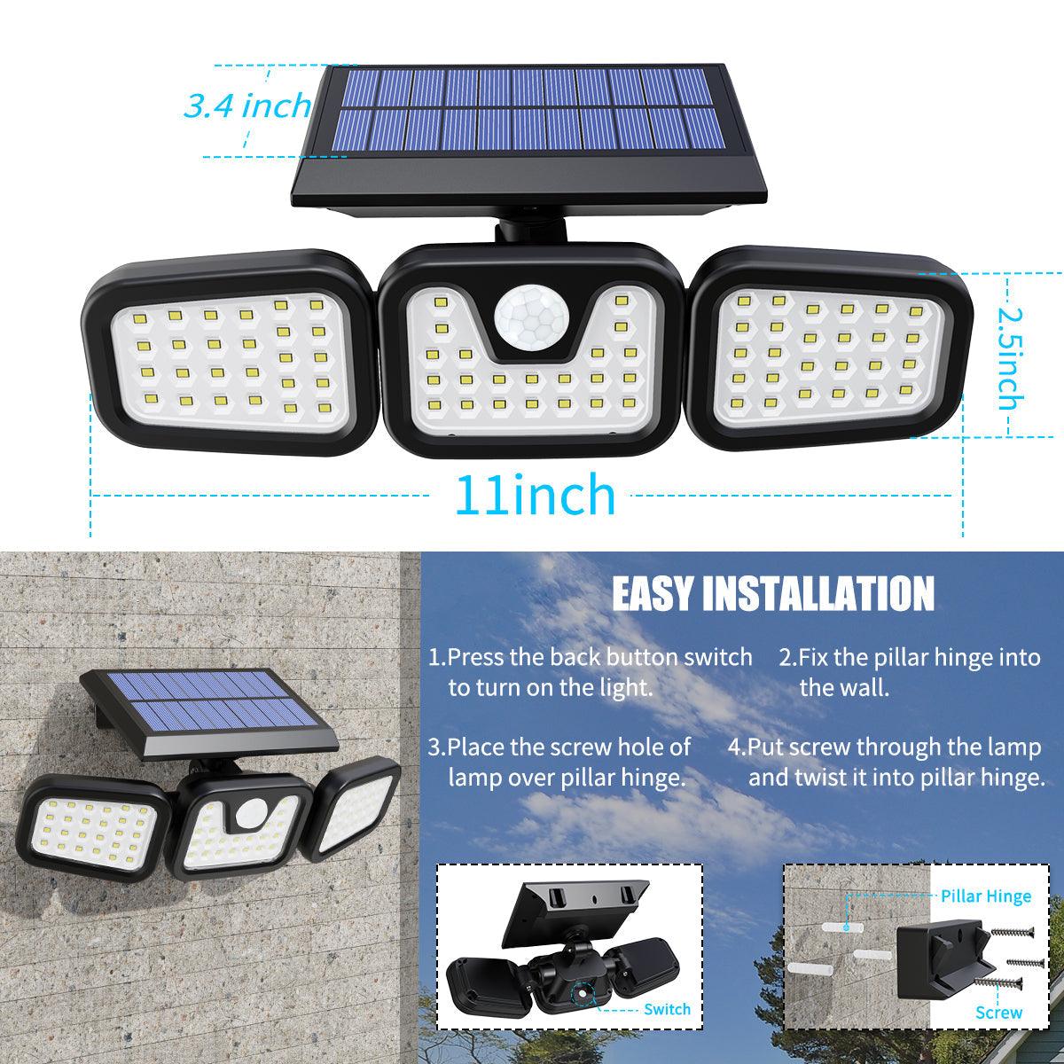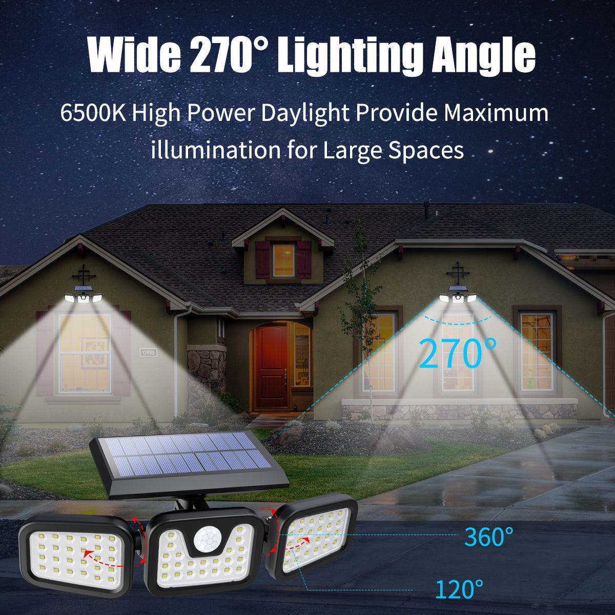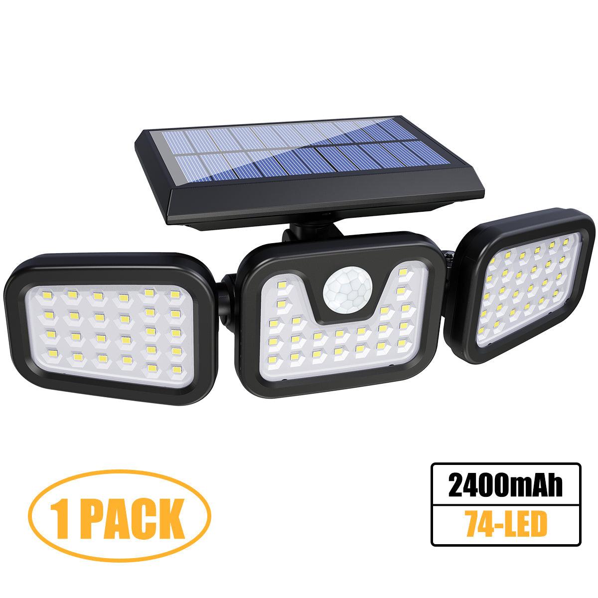74LED Solar Lights Outdoor, Wireless Solar Wall Lamp Motion Sensor Security Lights IP65 Waterproof 3 Adjustable Heads 270° Wide Angle Illumination LED Flood Light Spotlights- Porch Garden Patio Garage