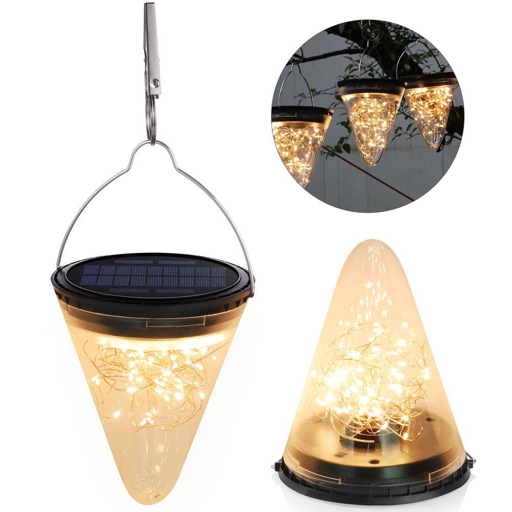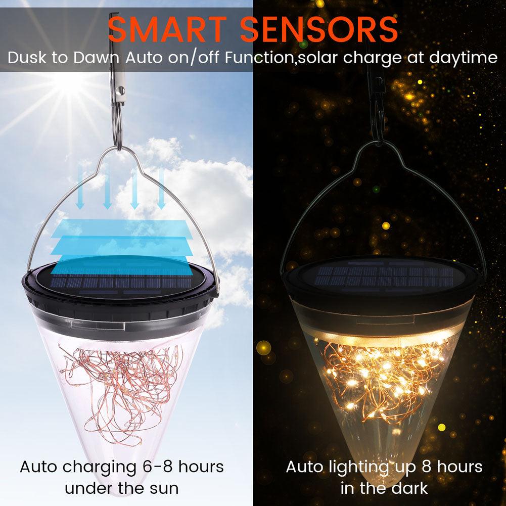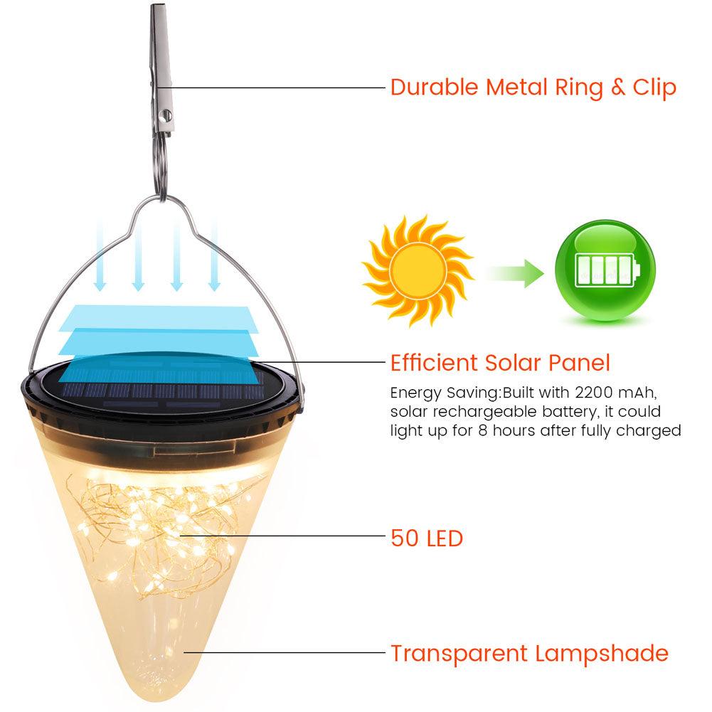 2 Pack Solar Lantern,Outdoor Garden Hanging Lantern-Waterproof LED Flickering Flameless Cone Lantern for Table,Outdoor,Party,Christmas,Halloween