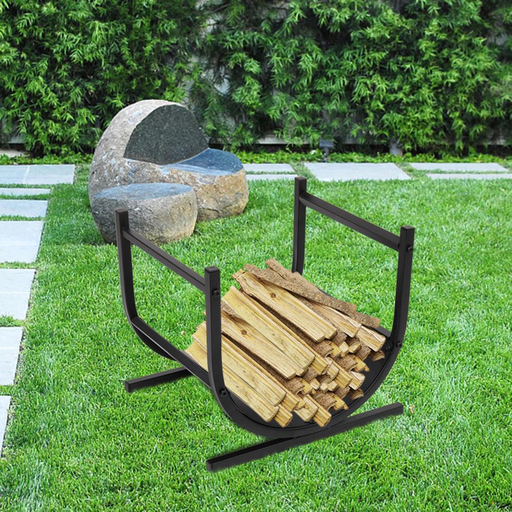 Indoor/Outdoor Firewood Rack Stand, Metal Wood Racks for Firewood, U-shaped Fireplace Logs Rack, Outdoor/Indoor Firewood Kindling Holder, Burning Wood Storage Carrier, Black, A1904
