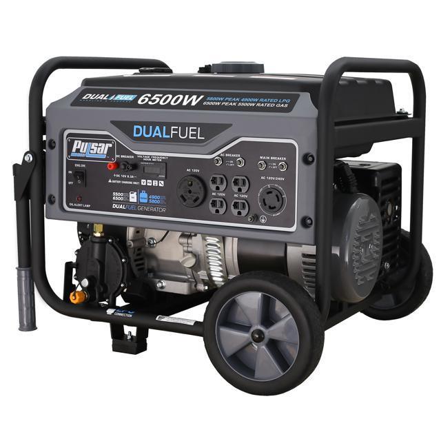 Pulsar G65BN Portable Gas/LPG Dual Fuel Generator - 5500 Rated Watts & 6500 Peak Watts - RV Ready - CARB Compliant