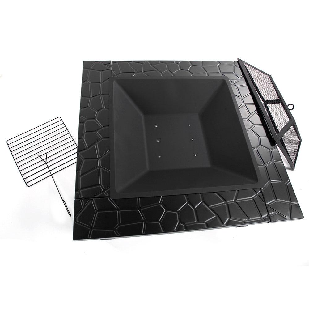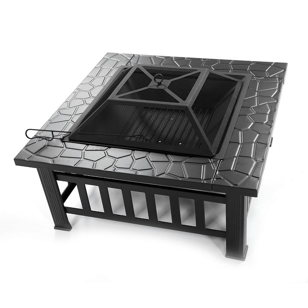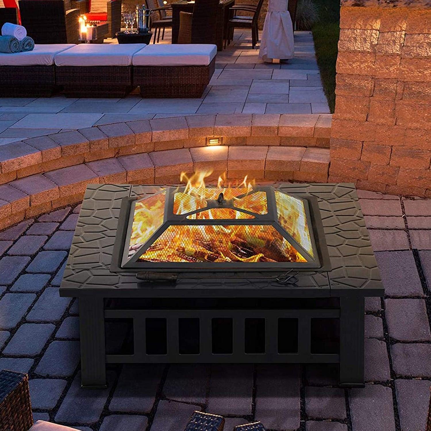 Fire Pits for Outside, URHOMEPRO 32" Wood Burning Fire Pit Tables with Screen Lid, Poker, Outdoor Fire Pit Patio Set, Backyard Patio Garden Stove Fire Pit/Ice Pit/BBQ Fire Pit, Black, W6463