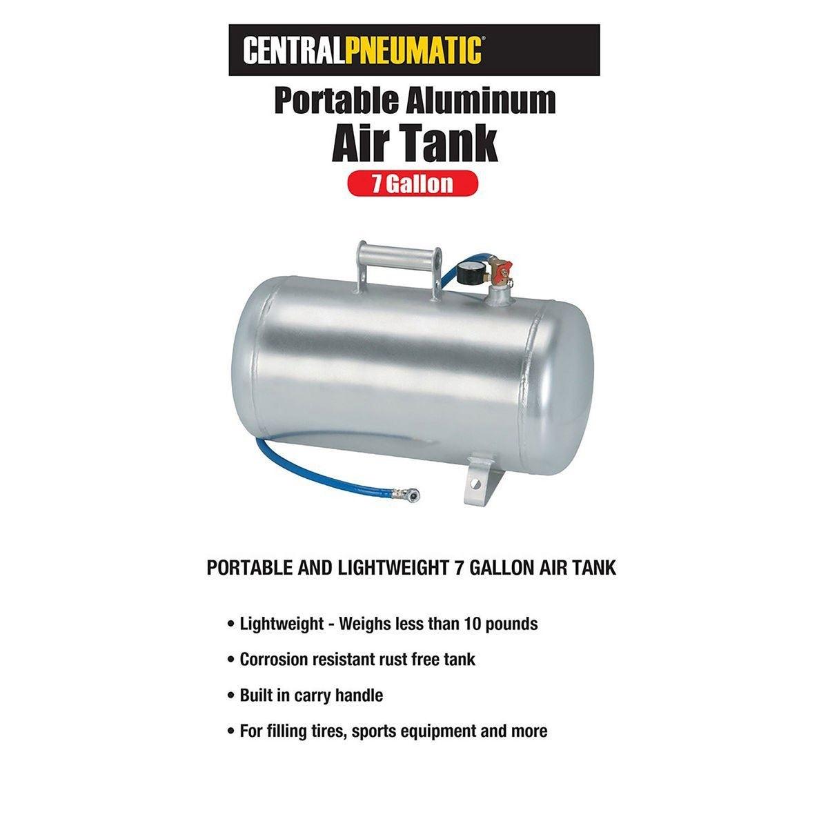 This air tank gives you portable air power while weighing less than rolled steel tanks. The sturdy aluminum construction provides solid yet lightweight containment along with rustproofing. Ideal for inflating tires and sports equipment.