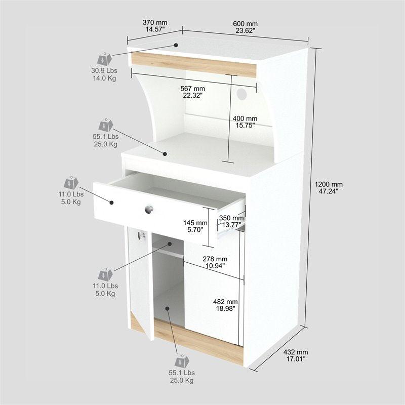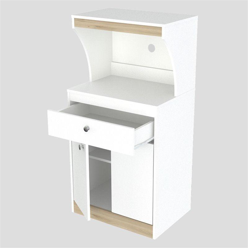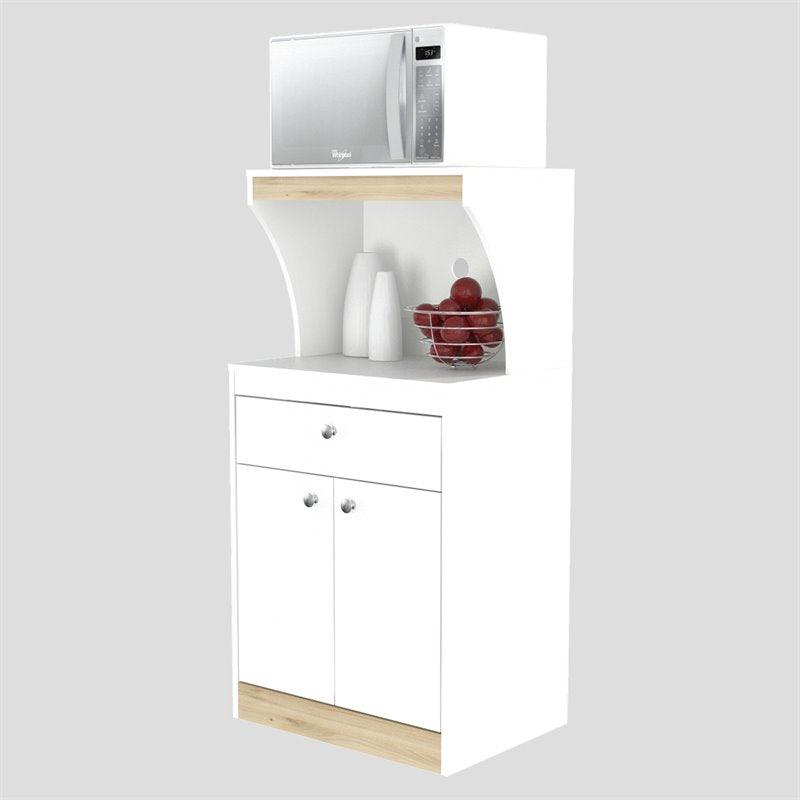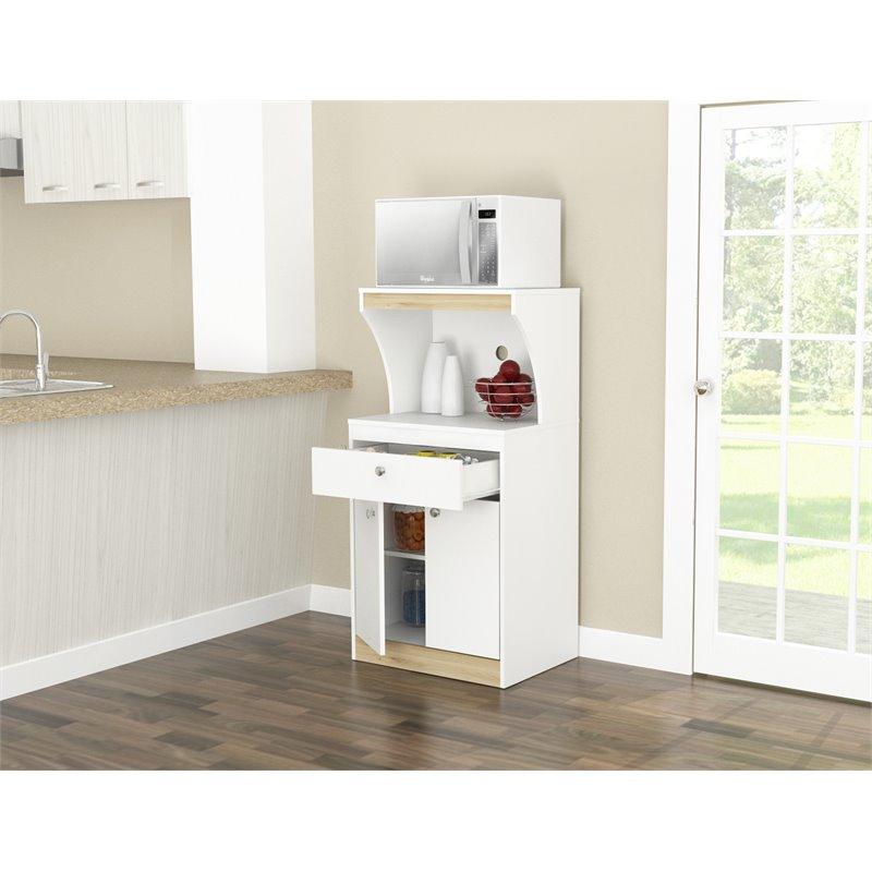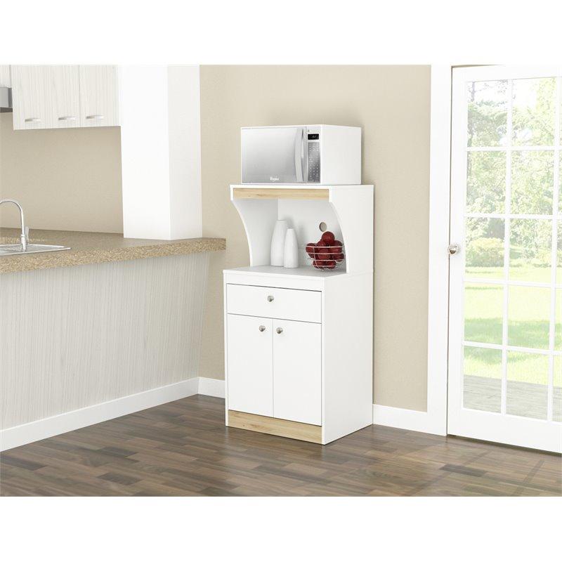 Inval Galley Laminate Kitchen Microwave Storage Cabinet, White and Oak