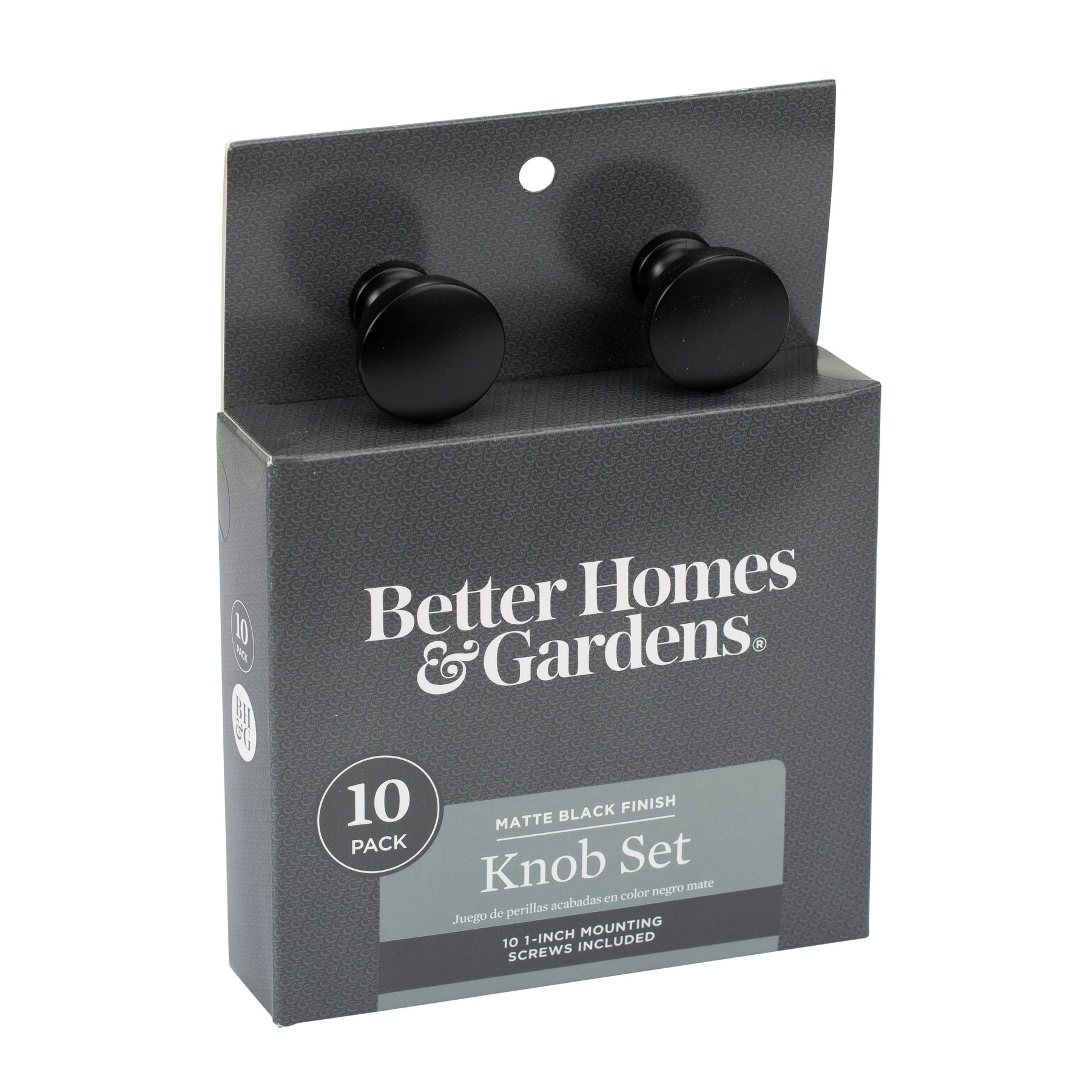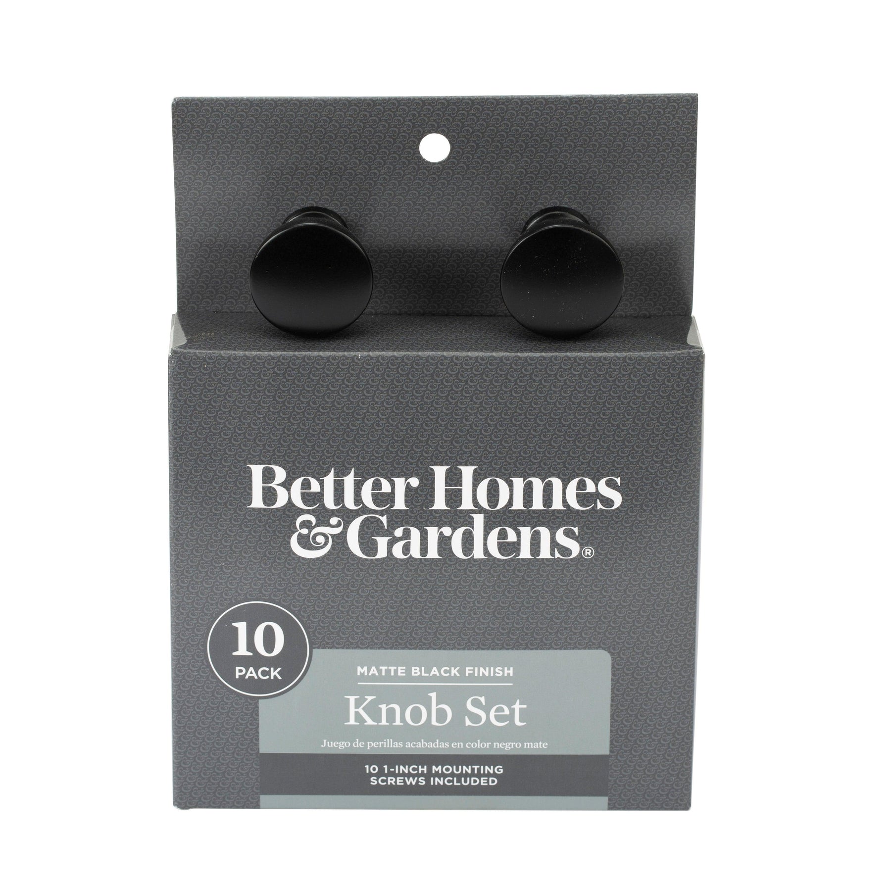 Better Homes & Gardens 1-1/4" (32 mm) Modern Knob, Matte Black, 10 Pack