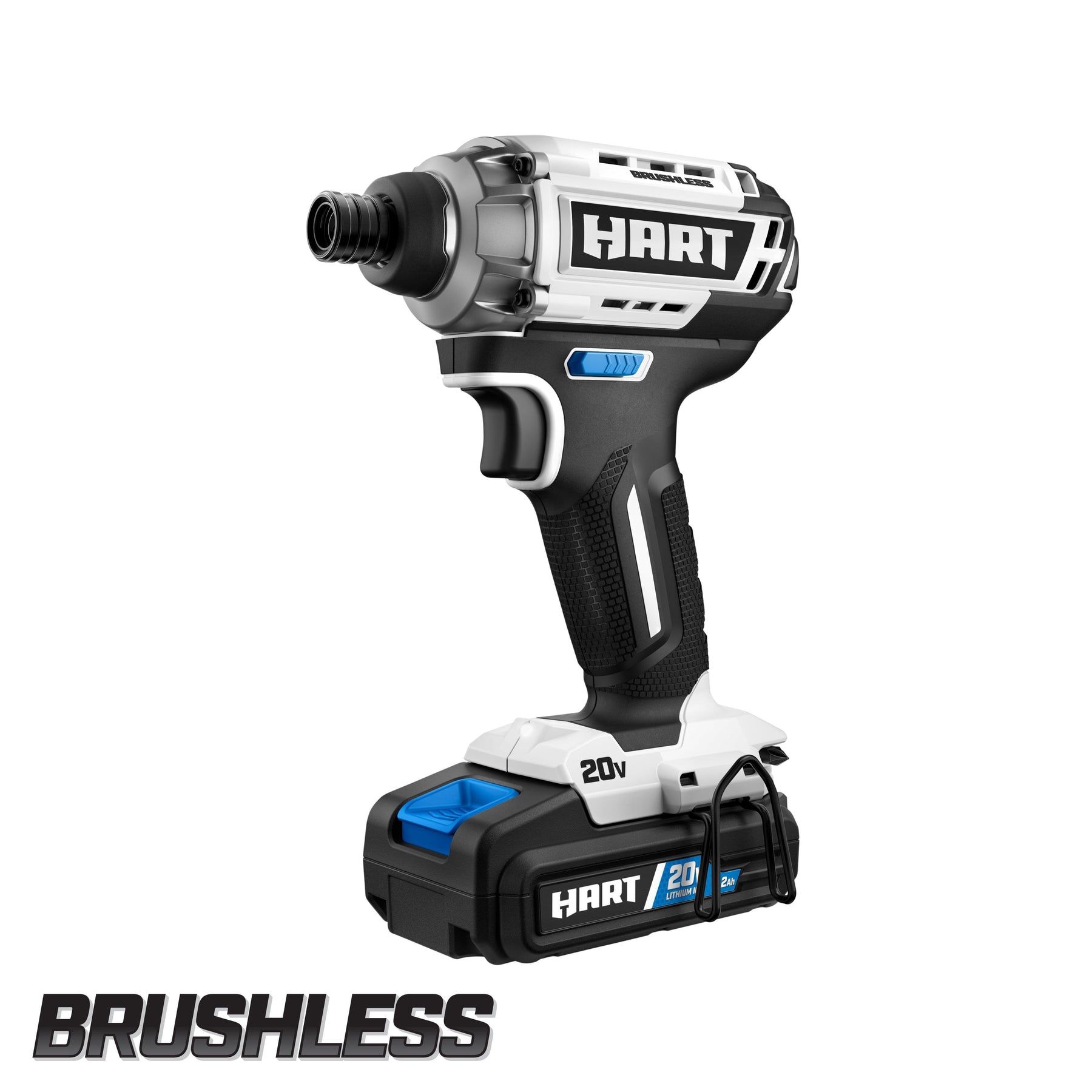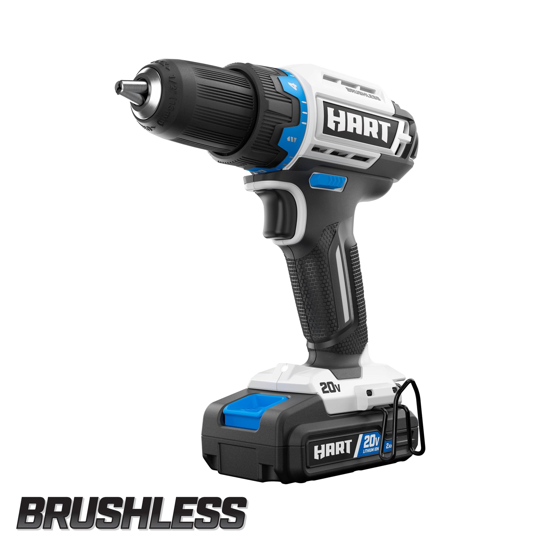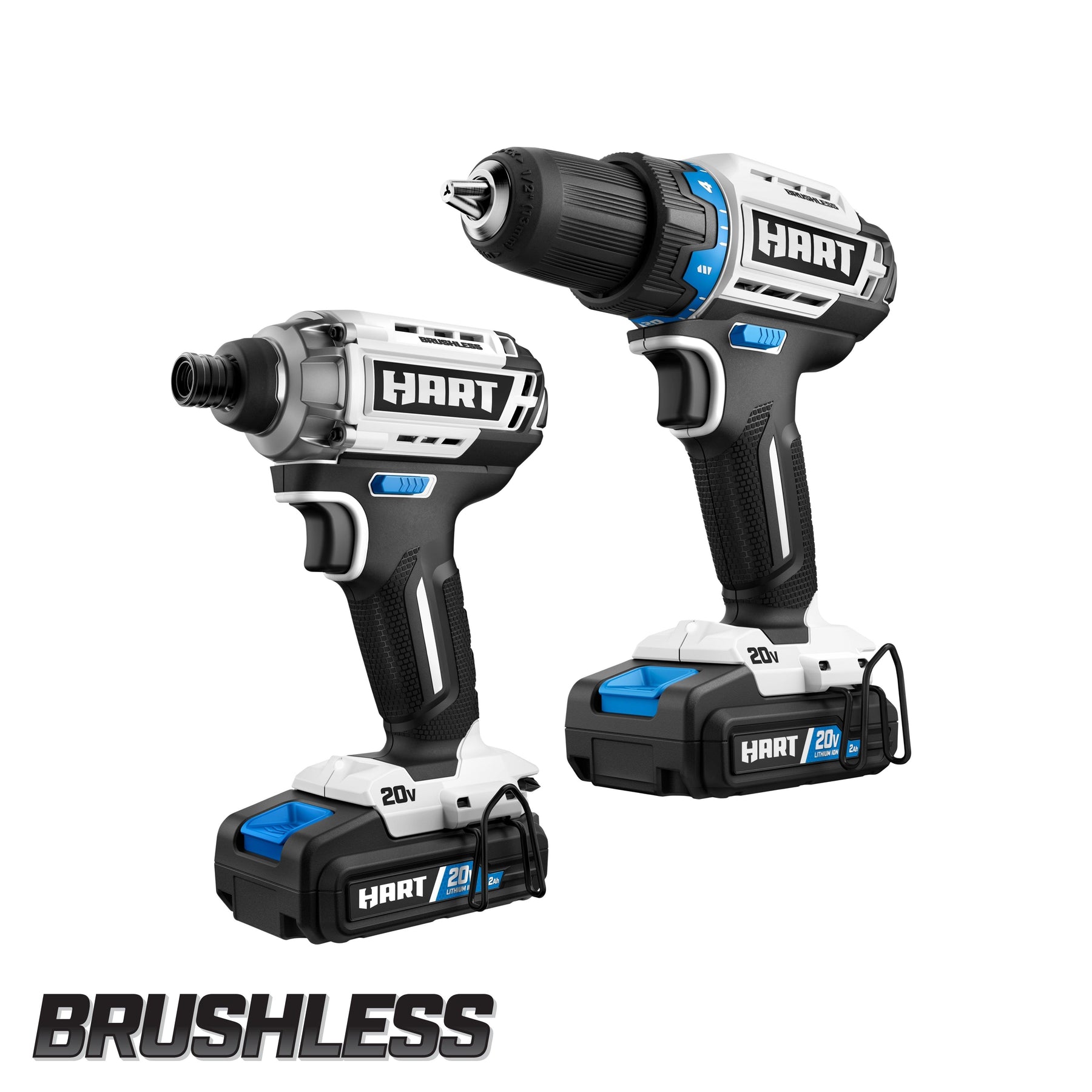 HART 20-Volt Cordless Brushless Drill and Impact Combo Kit with 10-inch Storage Bag, (2) 2.0Ah Lithium-Ion Batteries
