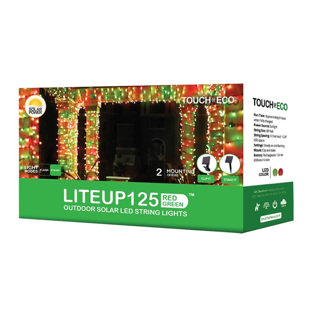 125 Solar Powered LED String Lights, 68 Feet - Red & Green