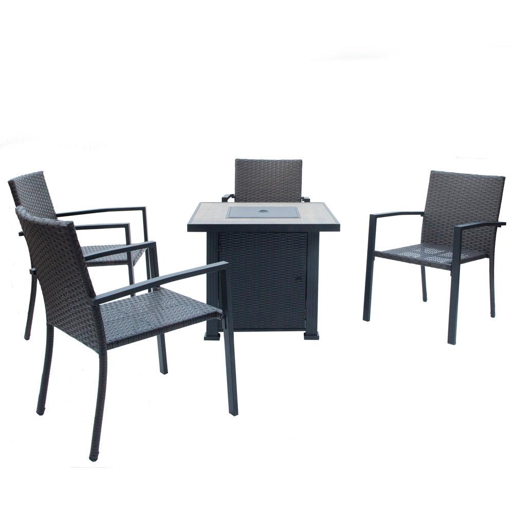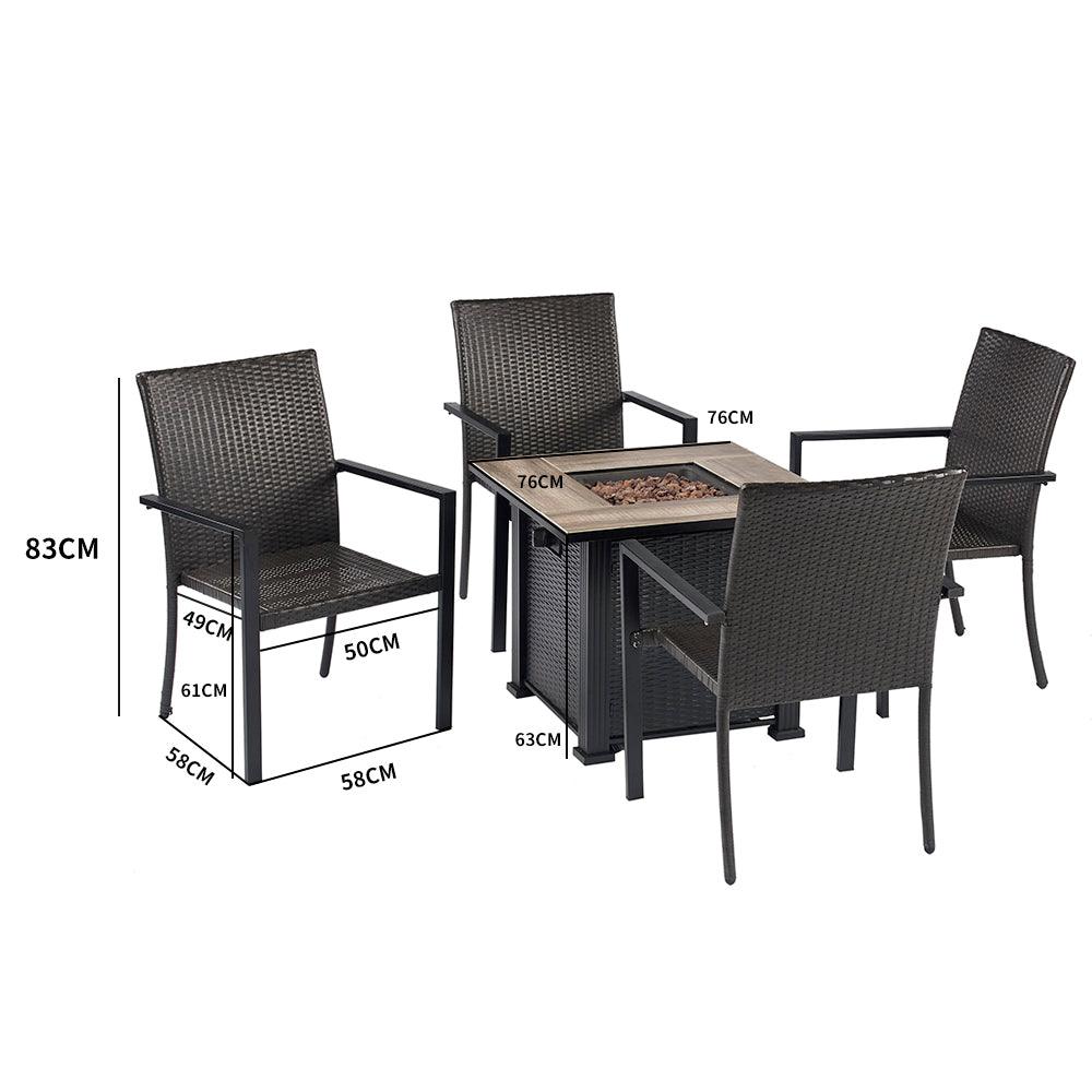 Fire Pit Table 5 pcs Set ,Outdoor Fire Tables,50,000BTU Stainless Steel Burner- brown