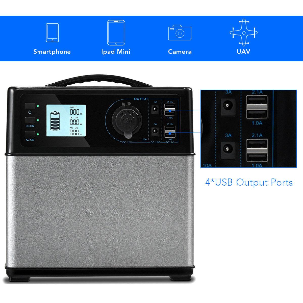 Gymax 400Wh Portable Solar Power Generator Supply Energy Storage 4*USB/2AC&DC Inverter