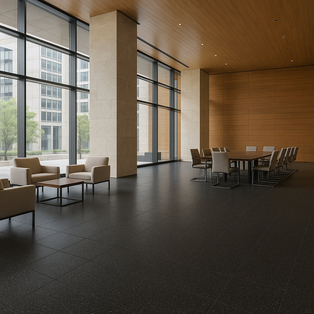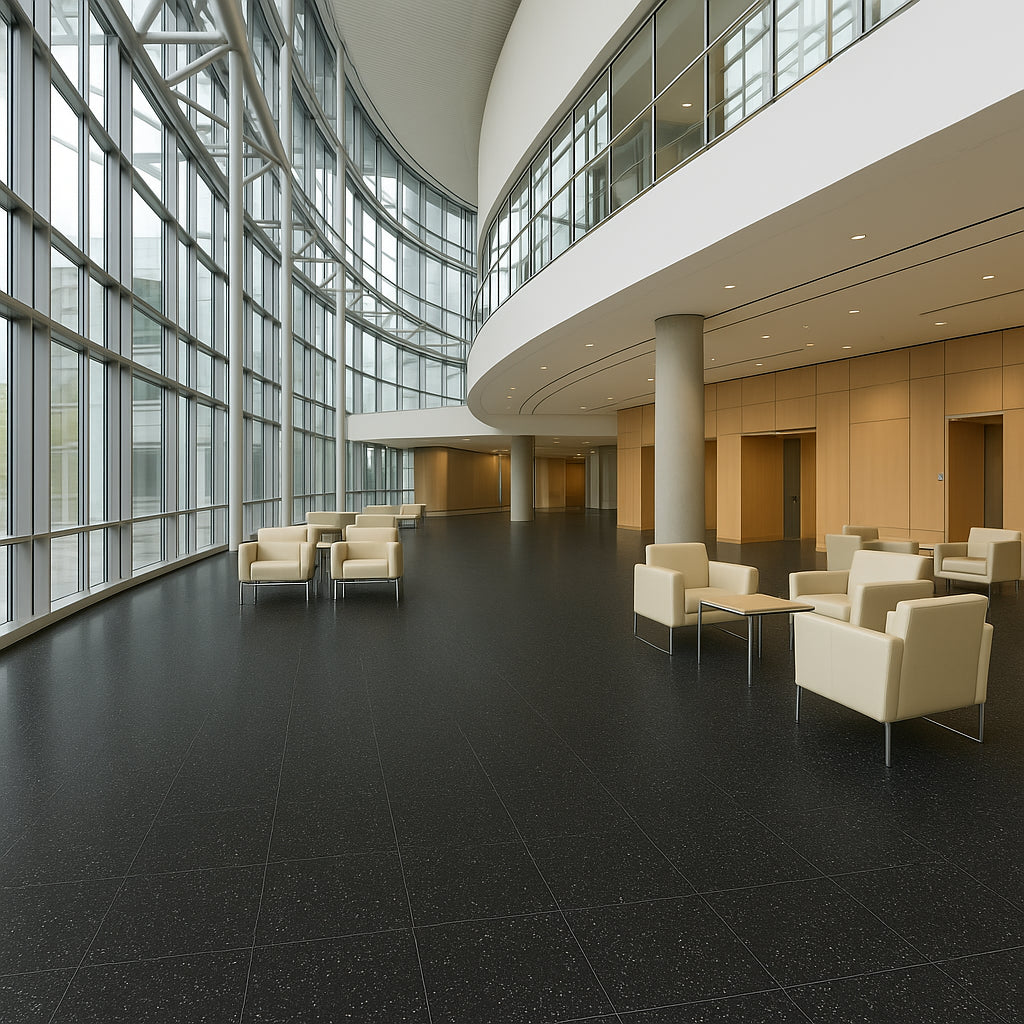 Armstrong Flooring Safety Zone VCT tiles offer unmatched durability and style for commercial spaces. With a speckled slate black design, these tiles are FloorScore certified for indoor air quality and feature a protective acrylic wear layer for heavy traffic areas.