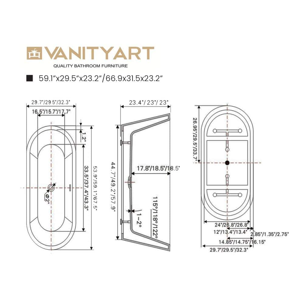 Indulge in luxury with the Vanity Art Bordeaux 67-inch Acrylic Flatbottom Freestanding Bathtub. Crafted from high-quality acrylic reinforced with fiberglass, this tub offers unparalleled strength and durability while providing a sleek, modern aesthetic to your bathroom.