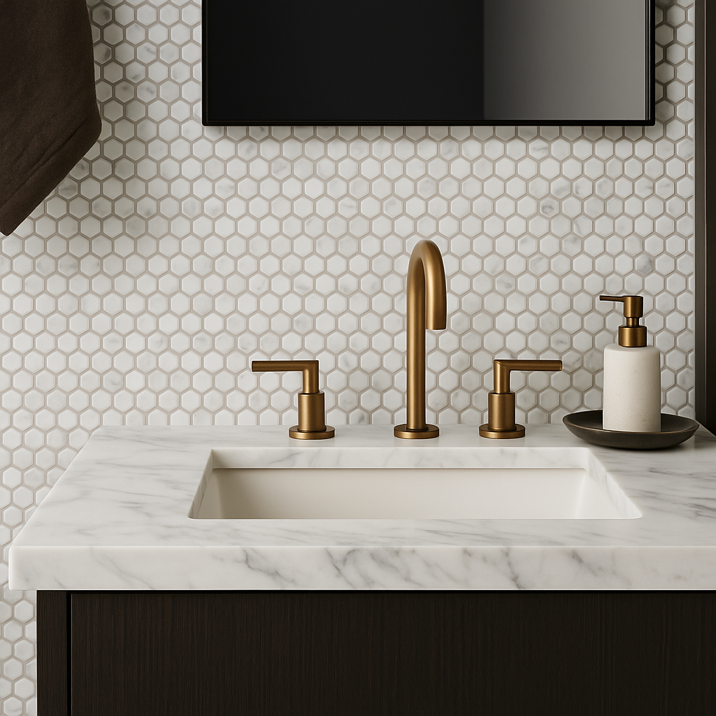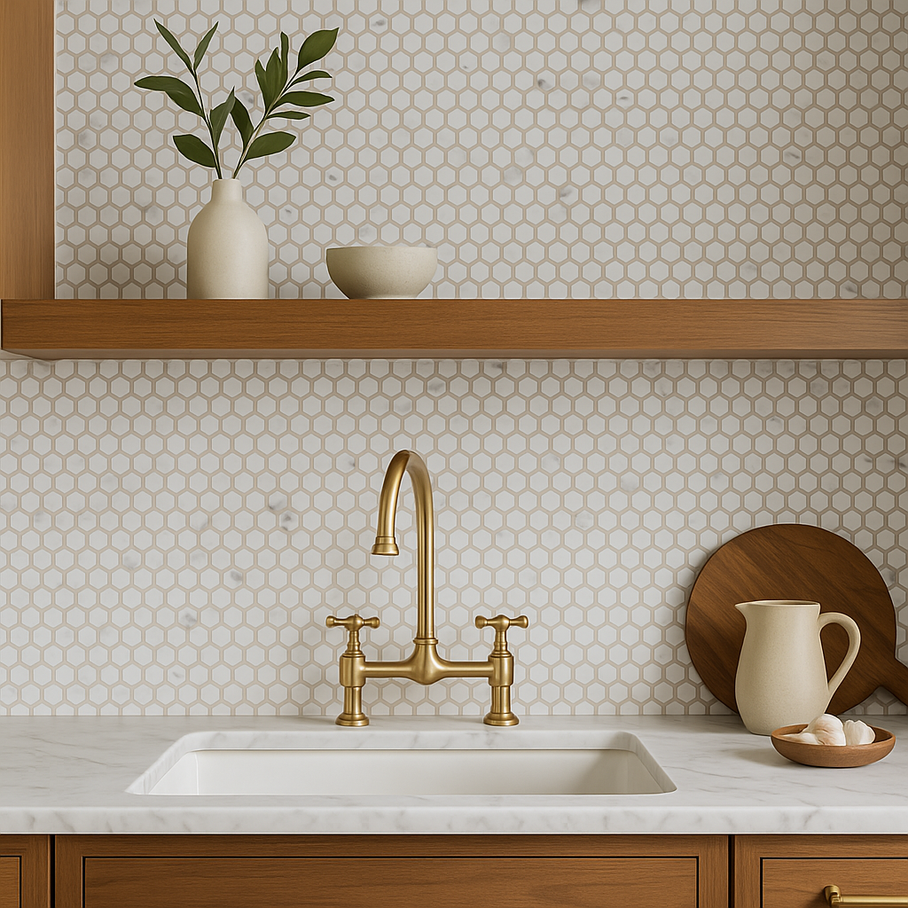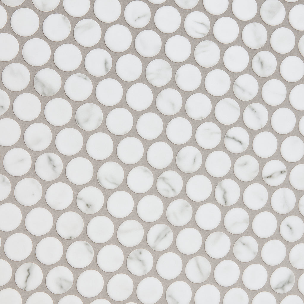 Transform your space with the elegant Carrara Catalina Penny Porcelain Mosaic Tile today!