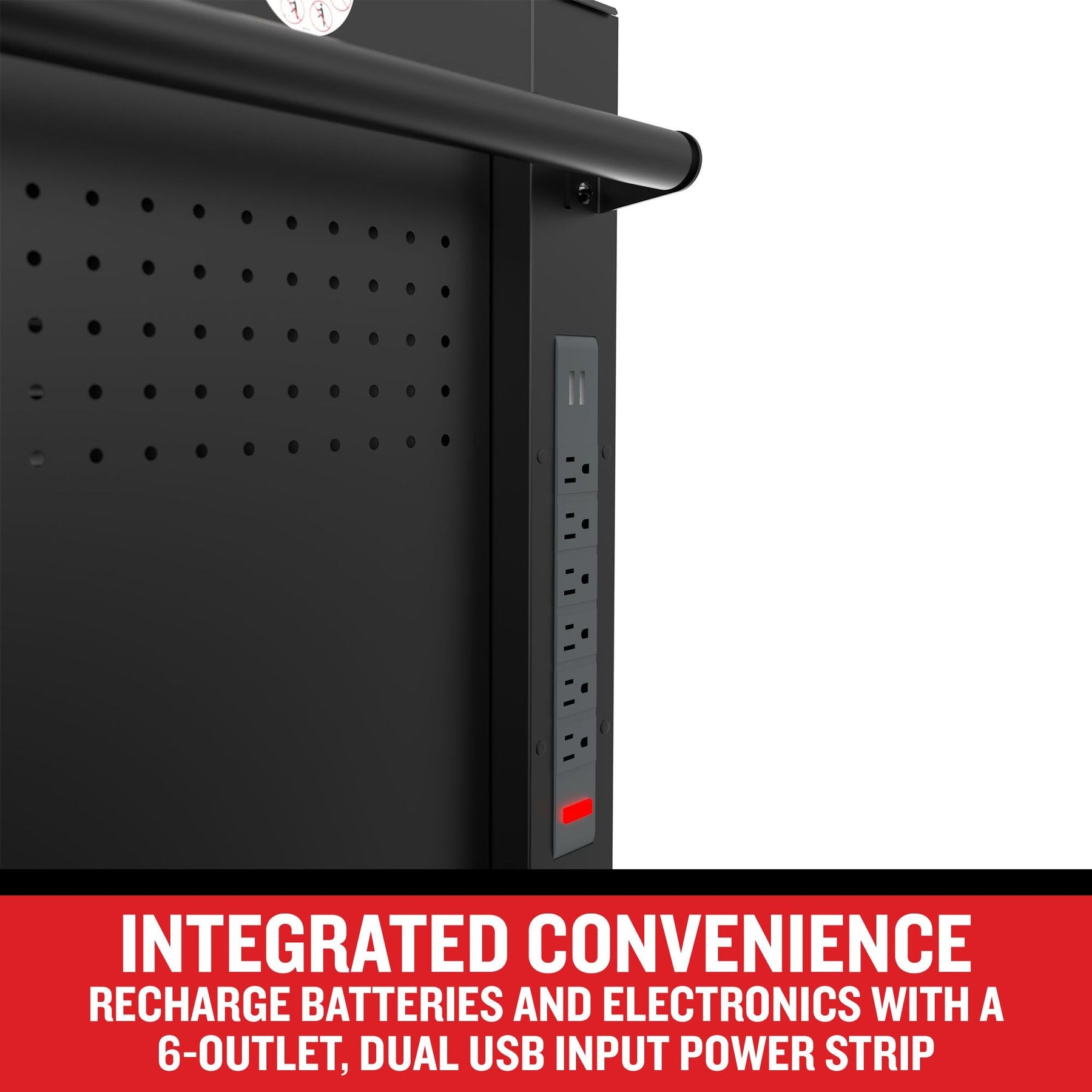 - Convenient Features: Includes a power strip with USB inputs for charging tools.