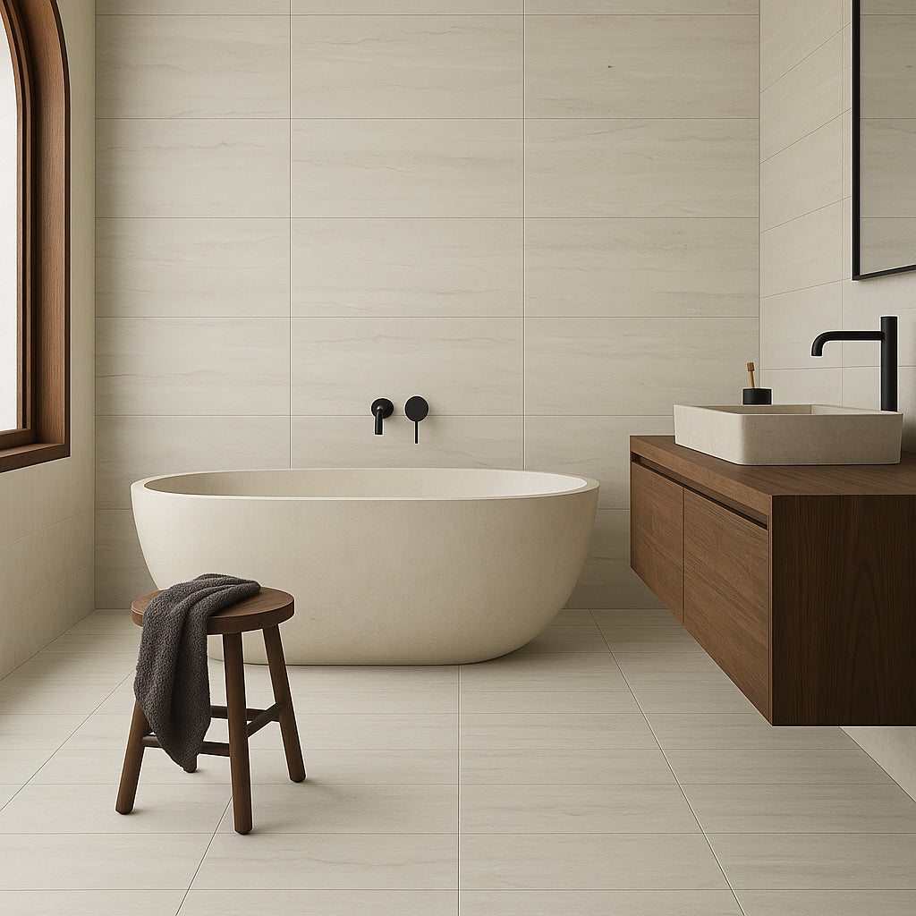 The Forum Ivory Porcelain Tile offers a stunning stone look with a matte finish, perfect for both indoor and outdoor applications. Its durable porcelain material ensures resistance to stains and heavy foot traffic, making it ideal for residential and commercial spaces.