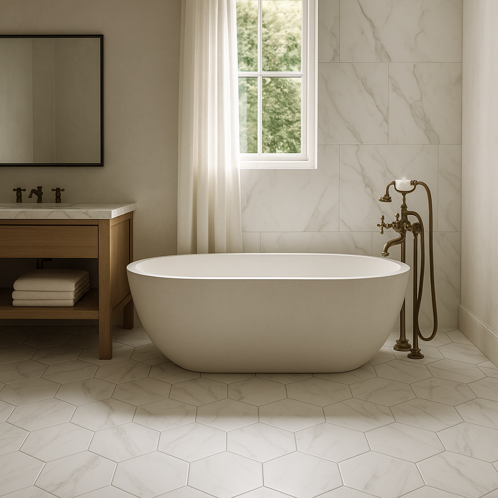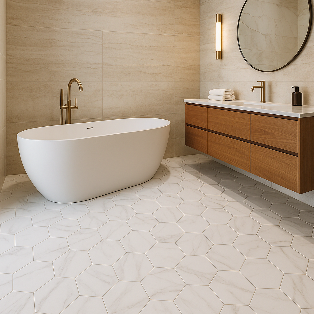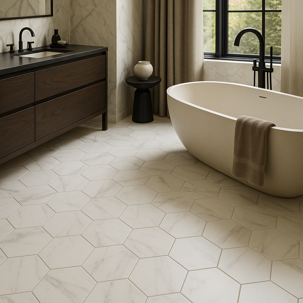 Transform your space with the elegant Marble Art Matte Hexagon Porcelain Tile today!