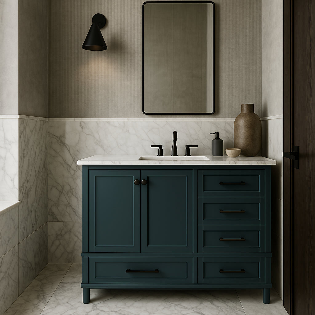 Elevate your bathroom's aesthetic with the Merryfield 37-inch Bath Vanity. Its Antigua Green finish and Carrara marble top exude sophistication, while the soft-close drawers and doors add a touch of modern convenience. Pair it with matte black fixtures for a striking contrast, or complement its traditional style with warm lighting. This vanity is not just a functional piece but a statement of refined taste.