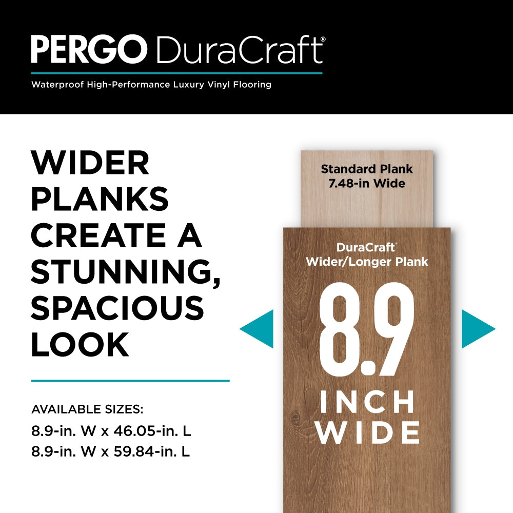 Transform your home with Pergo DuraCraft Nottingham Oak Vinyl Plank Flooring. These luxury planks feature a warm brown oak finish with wirebrushed texture, providing a realistic hardwood look. Boasting a 22-mil wear layer, they are both waterproof and incredibly durable, making them ideal for high-moisture areas like kitchens and bathrooms.