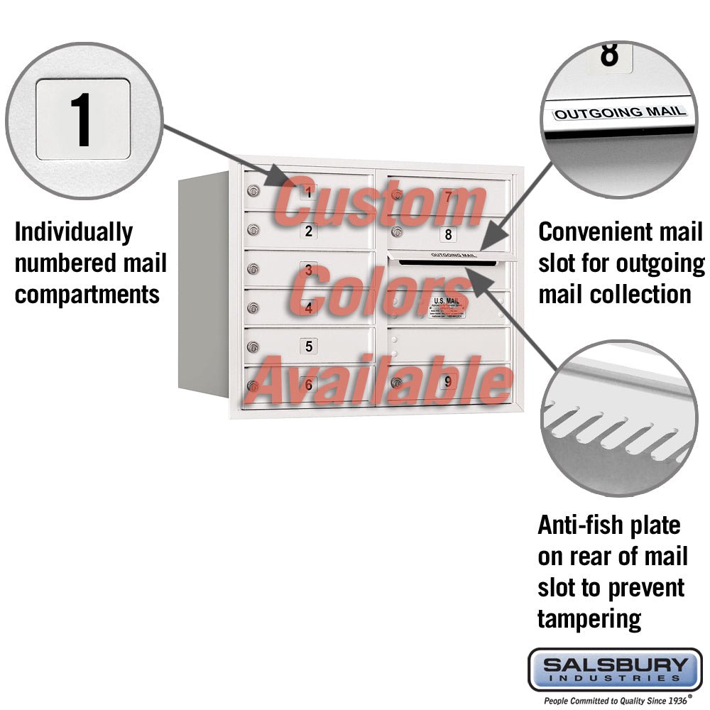 Recessed Mounted 4C Horizontal Mailbox - 6 Door High Unit - Double Column - 9 MB1 Doors - Rear Loading - Private Access