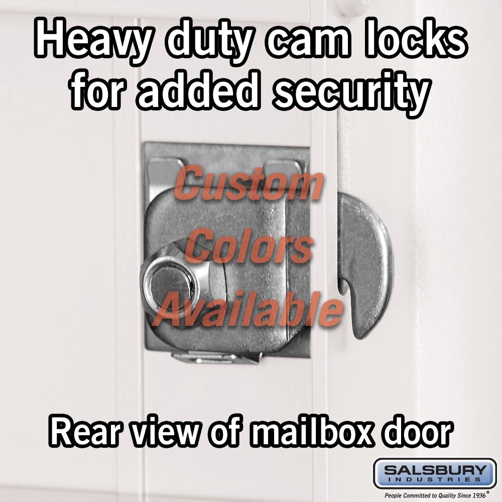 A: The mailbox uses heavy-duty cam locks with dust/rain shields and comes with 3 keys.