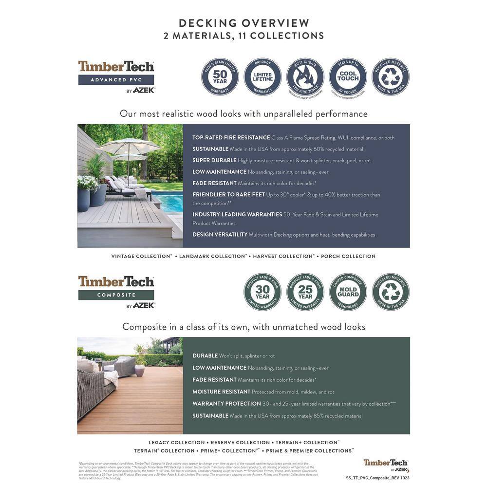Discover low-maintenance elegance with TimberTech's Slate Gray PVC Deck Sample. This board combines the timeless beauty of stained wood with the advanced durability of capped polymer technology, ensuring a stunning, fade-resistant finish without the hassle of sanding or staining.