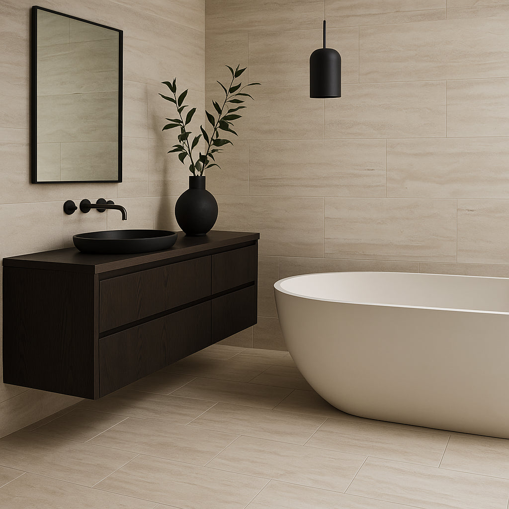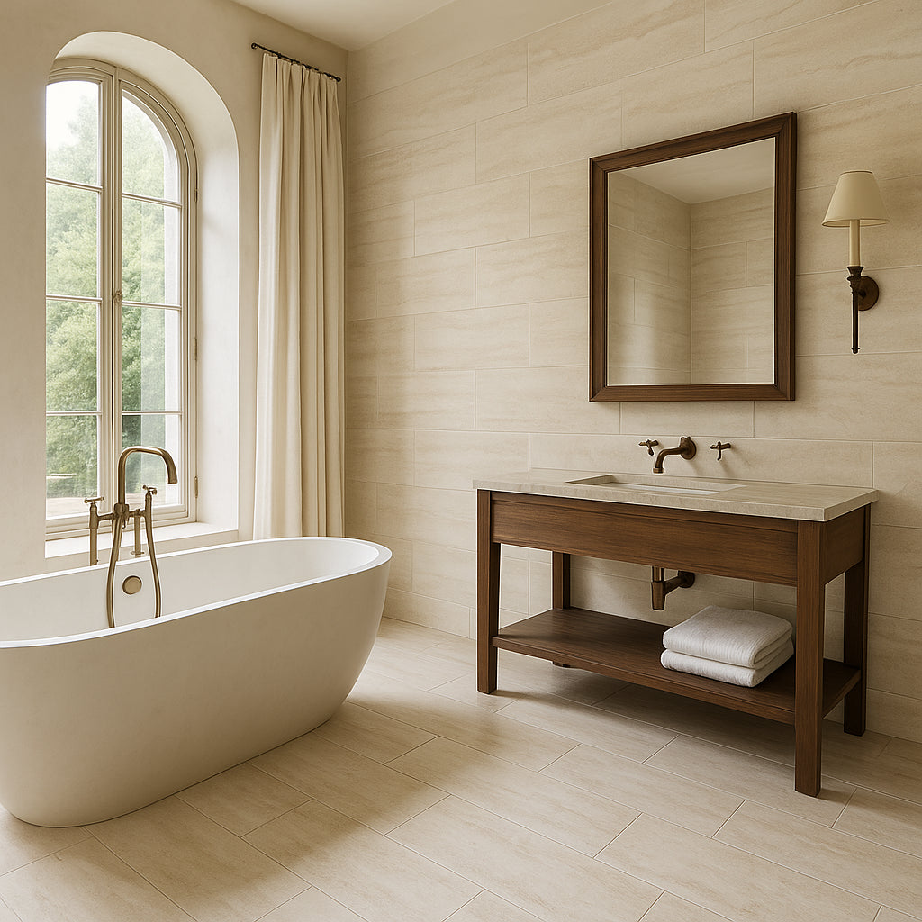 Transform your space with the durable and elegant Travertini Bianco Porcelain Tile.